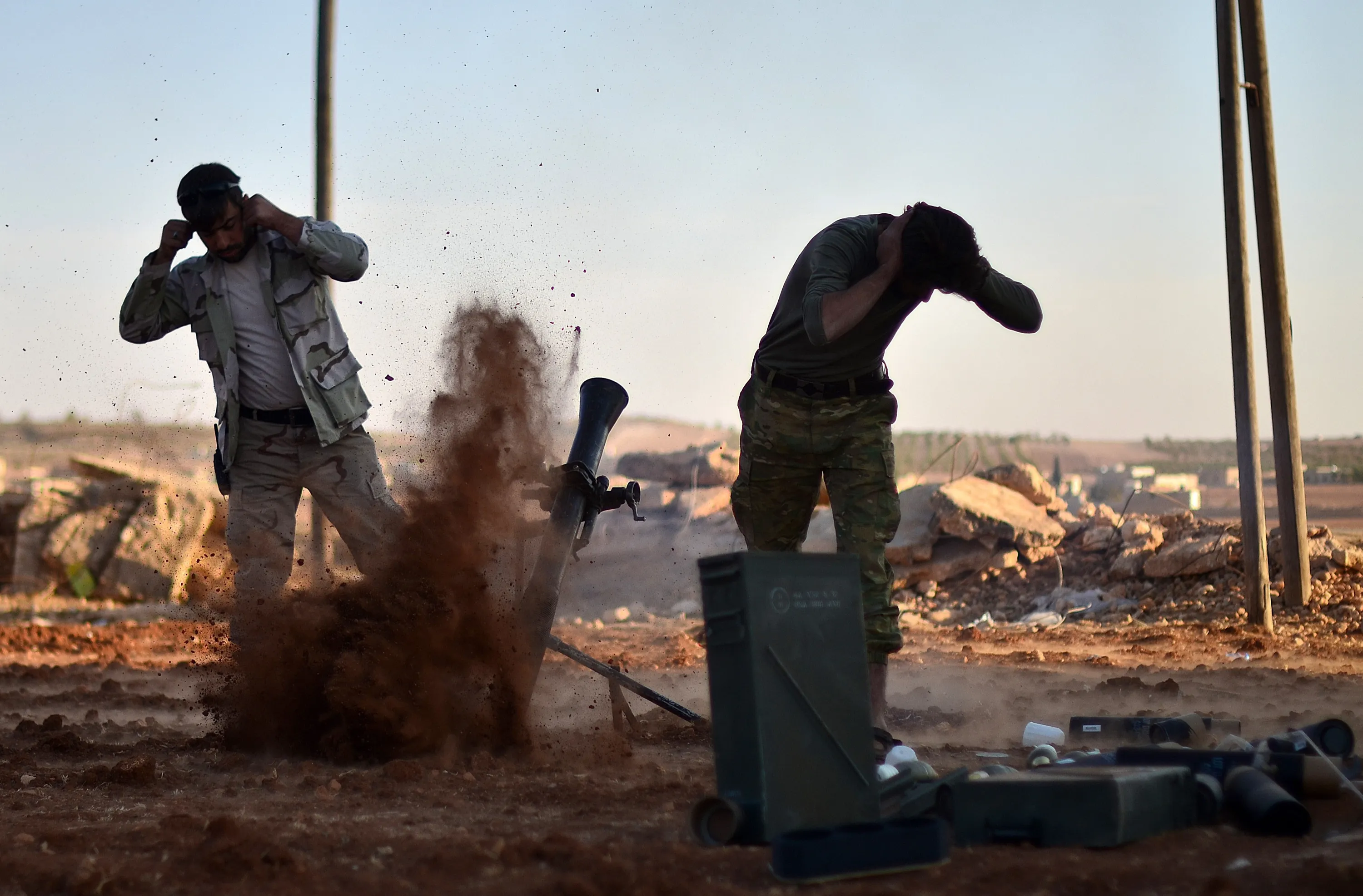 Free Syrian Army members attack Daesh positions at Mari district in Aleppo, Syria on October 27, 2016. The villages were cleared as part of Turkeys Operation Euphrates Shield. The anti-Daesh operation called 'Euphrates Shield', which was launched on August 24, aims at improving security, supporting coalition forces, supporting Syrias territorial integrity and eliminating the terror threat along Turkeys border through Free Syrian Army (FSA) fighters backed by Turkish armor, artillery, tanks and jets. (Photo by Huseyin Nasir/Anadolu Agency/Getty Images)