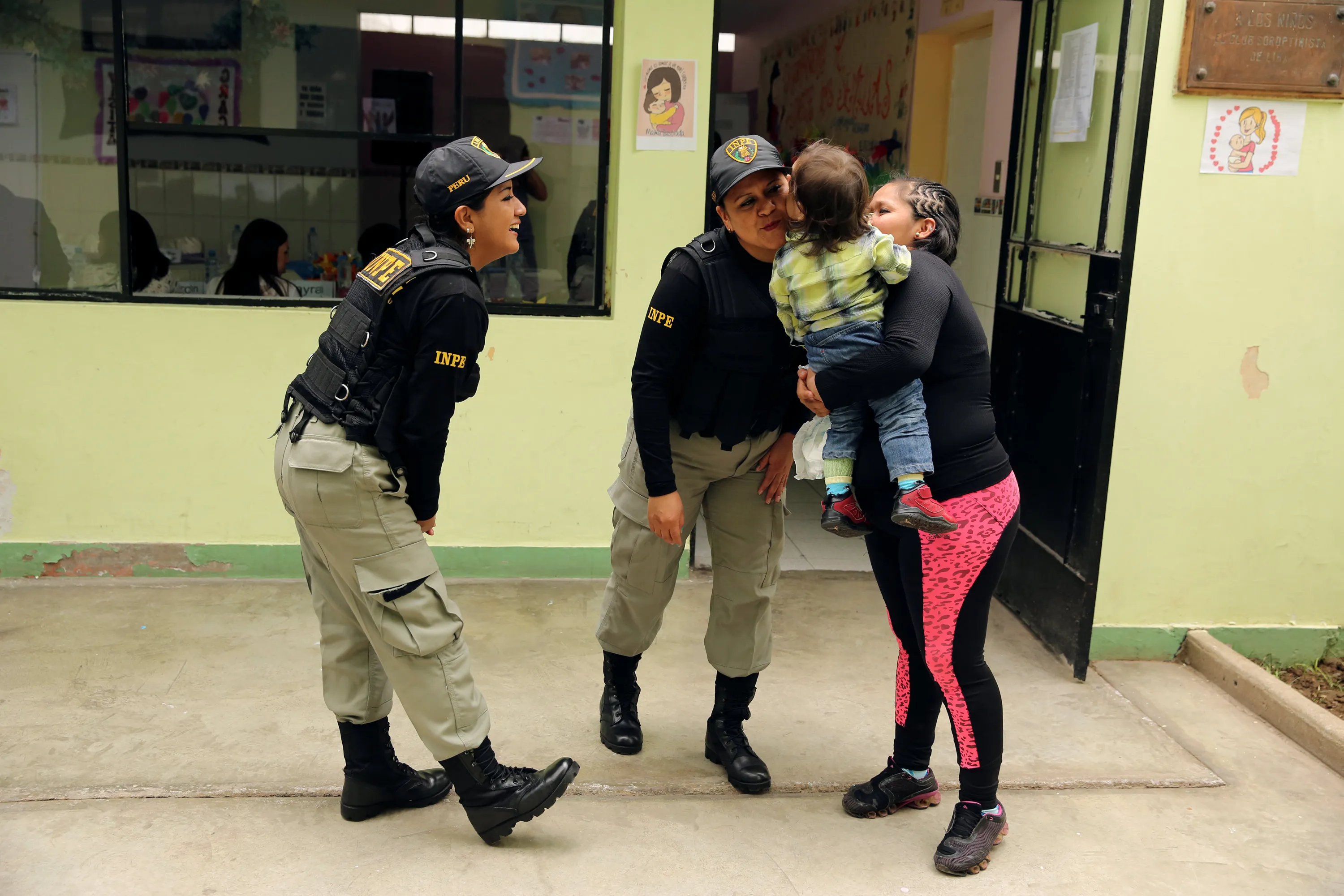 Guards and an inmate play with a child at a nursery school inside Santa Monica women's prison in Lima, Peru, October 31, 2016. (Photo by Mariana Bazo/Reuters)