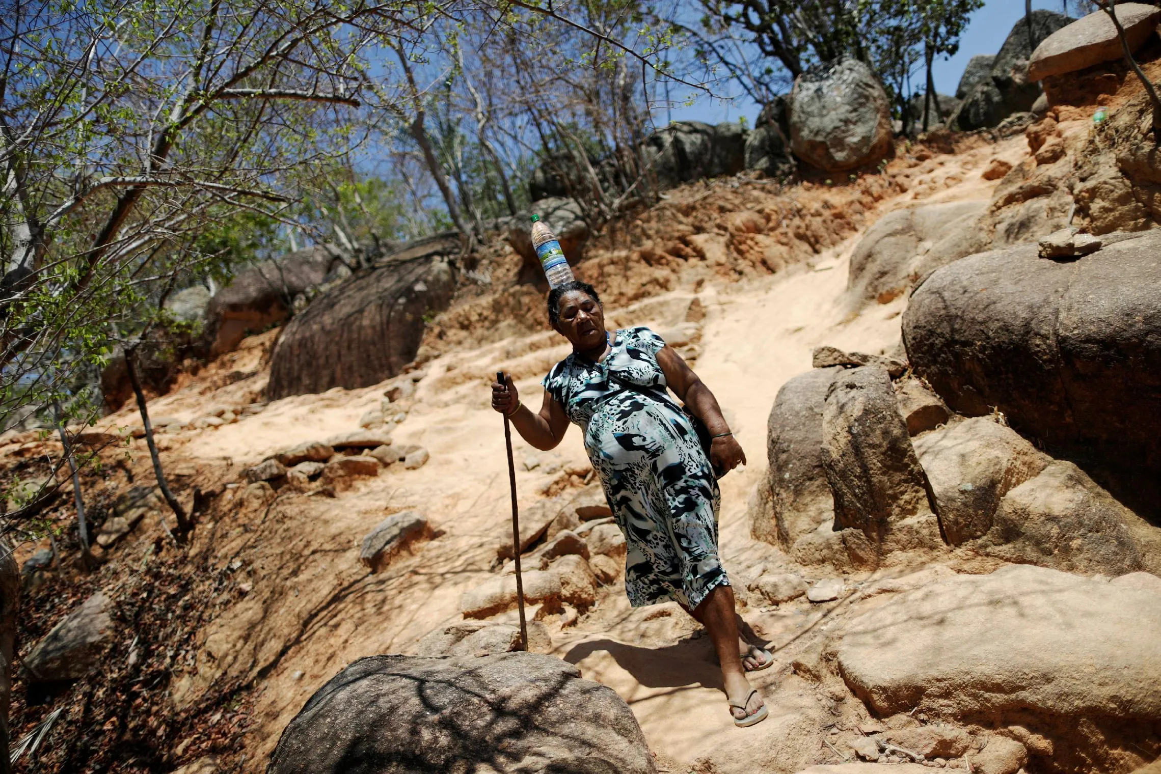 Catholic pilgrim Matilde Madalena de Jesus carries a bottle of water on her head during the annual pilgrimage of the dead (Romaria dos Finados) in the city of Juazeiro do Norte, Ceara state, in Brazil October 31, 2016. (Photo by Ueslei Marcelino/Reuters)