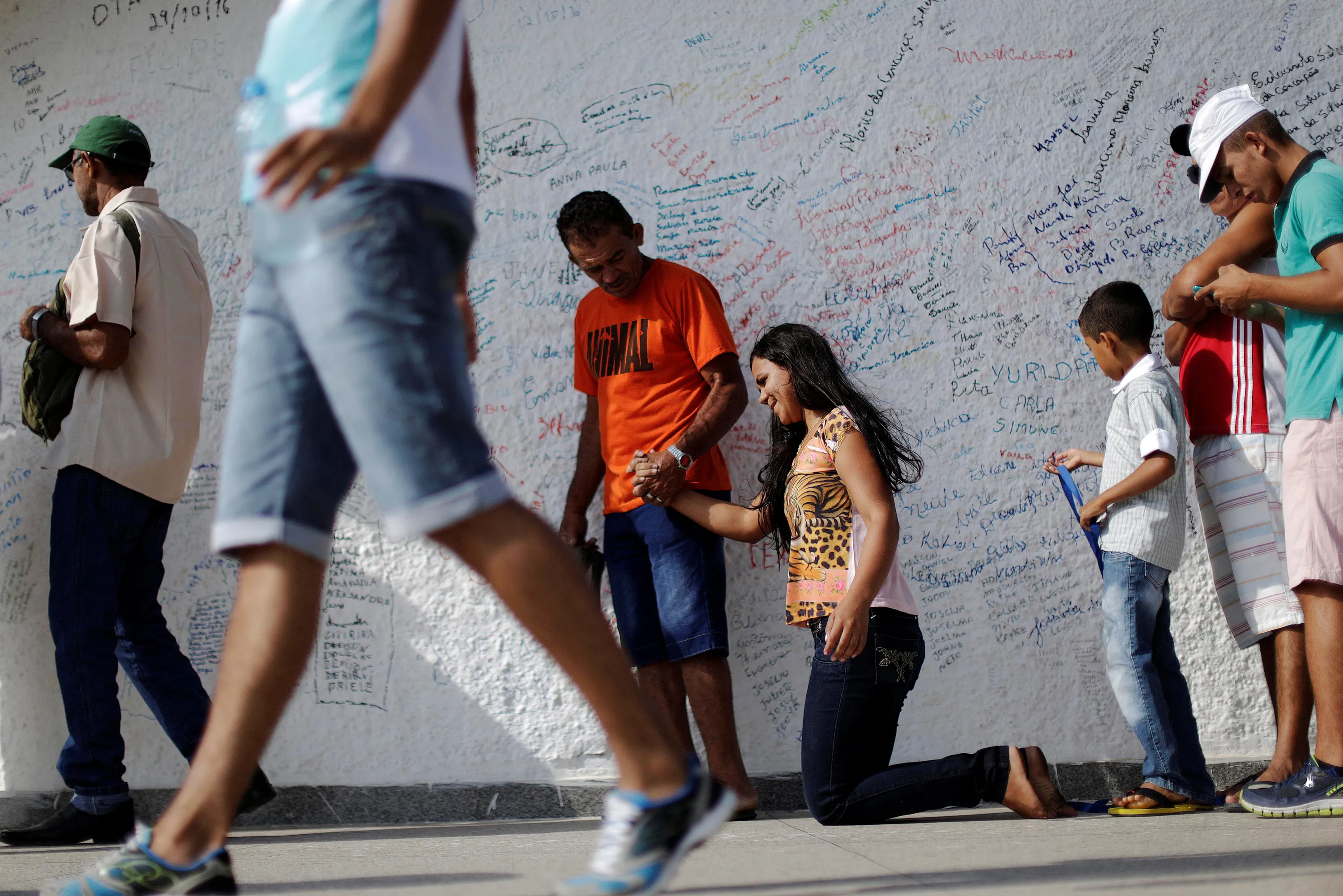 A catholic pilgrim is seen on the stairs of the Statue of Father Cicero during the annual pilgrimage of the dead (Romaria dos Finados), in the city of Juazeiro do Norte, Ceara state, in Brazil October 31, 2016. (Photo by Ueslei Marcelino/Reuters)
