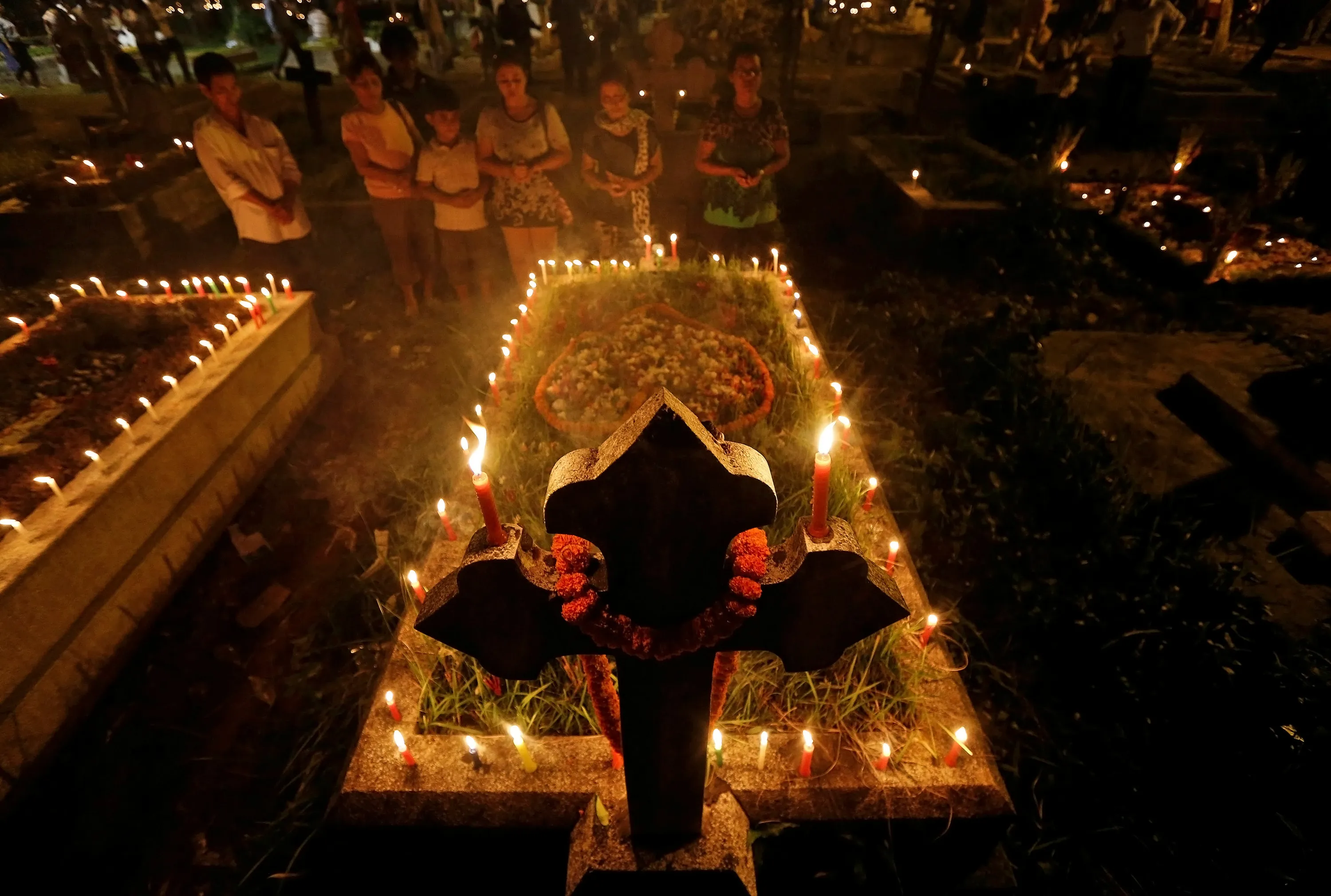 People pray in front of the grave of their relative after decorating it during the observance of All Souls Day in Kolkata, India November 2, 2016. (Photo by Rupak De Chowdhuri/Reuters)