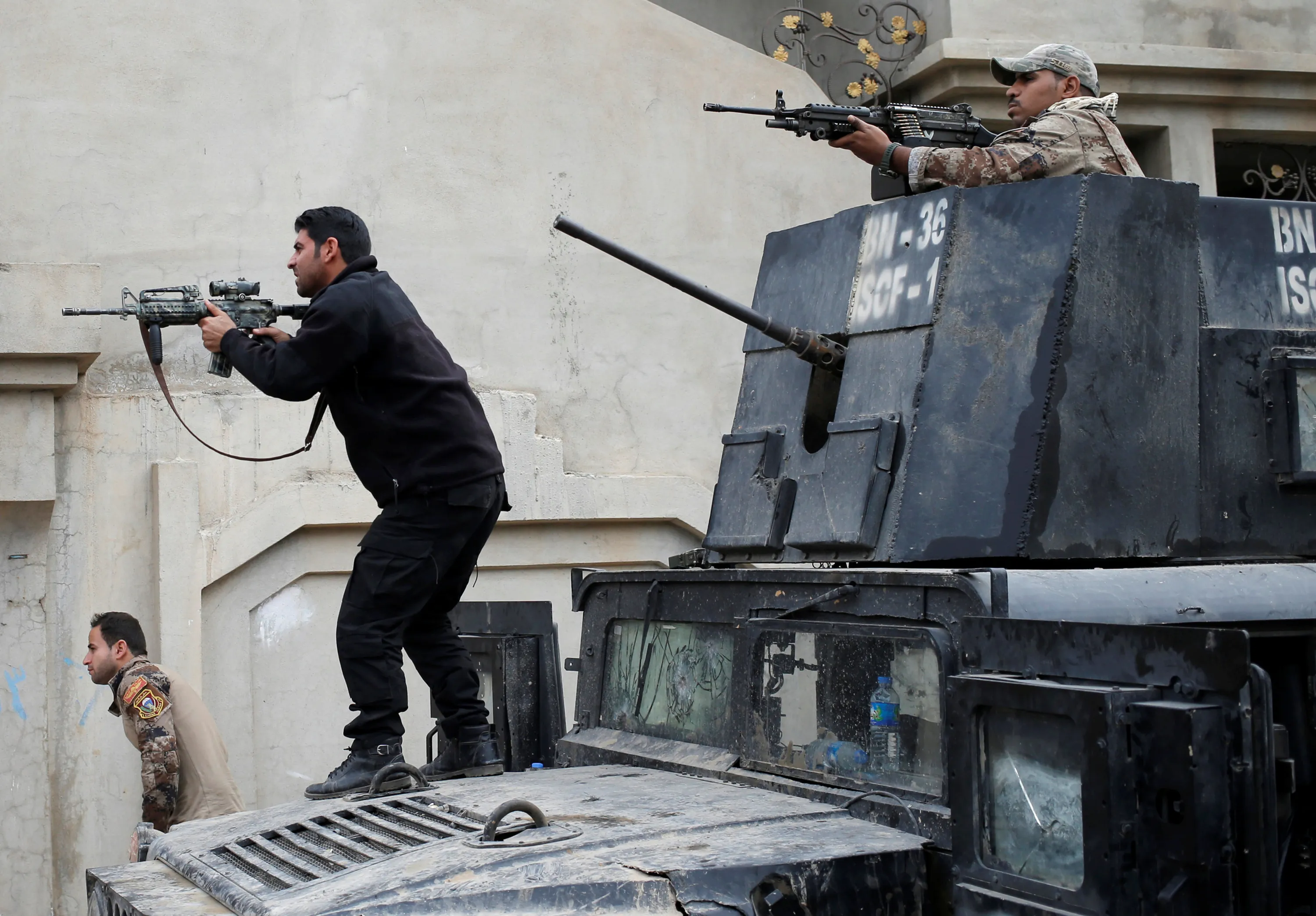 Iraqi special forces soldiers point guns at part of Mosul controlled by Islamic State fighters in Iraq, November 15, 2016. (Photo by Goran Tomasevic/Reuters)