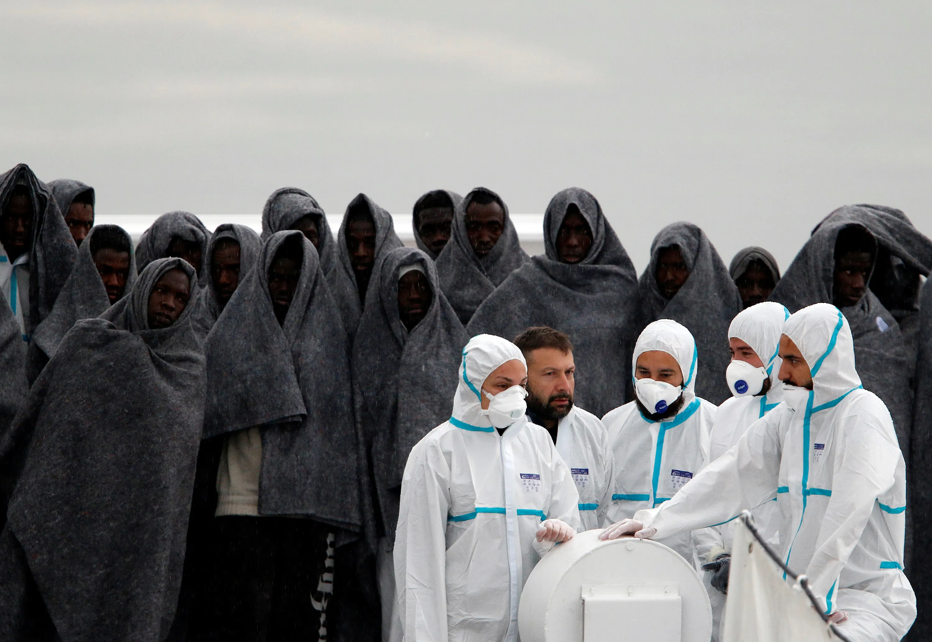 Migrants wait to disembark from Italian Coast Guard patrol vessel Diciotti in the Sicilian harbour of Catania, Italy, November 16, 2016. (Photo by Antonio Parrinello/Reuters)