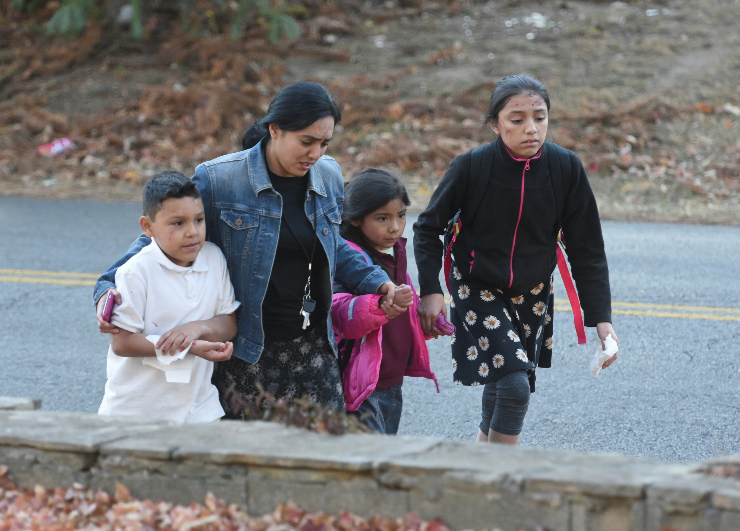 A woman escorts three children away from the scene of a school bus crash involving multiple fatalities in Chattanooga, Tennessee, U.S., November 21, 2016. (Photo by Reuters/Courtesy of Angela Lewis/Chattanooga Times Free Press)