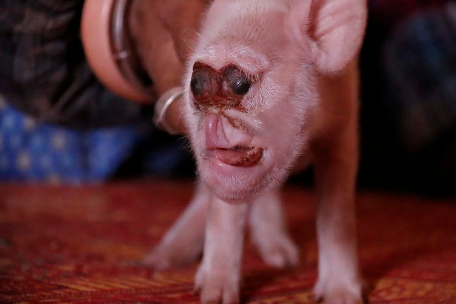 A piglet with a deformed face is seen at home of its owner in Zhijin, Guizhou province, China December 5, 2016. (Photo by Reuters/Stringer)