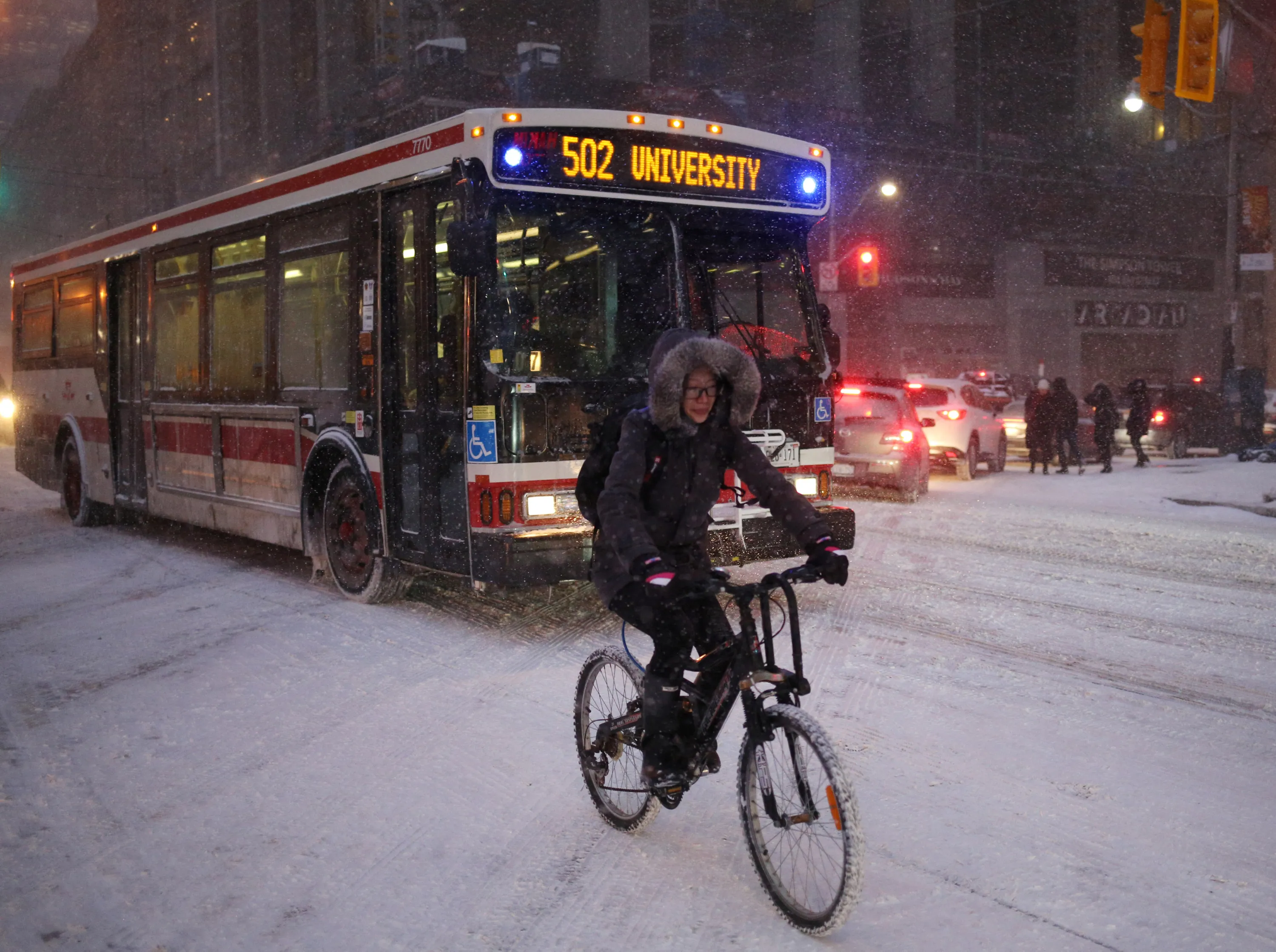A cyclist commutes home during a snowstorm in Toronto, Ontario, Canada, December 15, 2016. (Photo by Chris Helgren/Reuters)