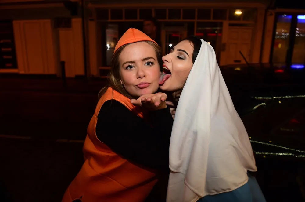 People out in Aberystwyth on “Booze Black Friday” or “Mad Friday” in Aberystwyth, Wales, UK on December 16, 2016. The “Booze Black Friday” is the last working Friday before Christmas when workers celebrate with their colleagues. Alcohol sales in pubs, clubs and off-licences rise dramatically on this day. (Photo by Keith Morris/Alamy Live News)