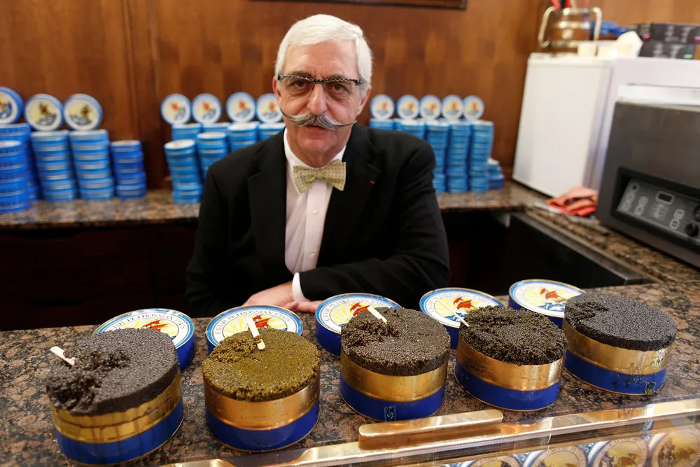 Armen Petrossian, CEO of Petrossian, son of the brand's Armenian founder and one of the world's oldest and largest caviar specialists, poses with tin cans of caviar inside his shop in Paris, France, December 13, 2016. (Photo by Charles Platiau/Reuters)