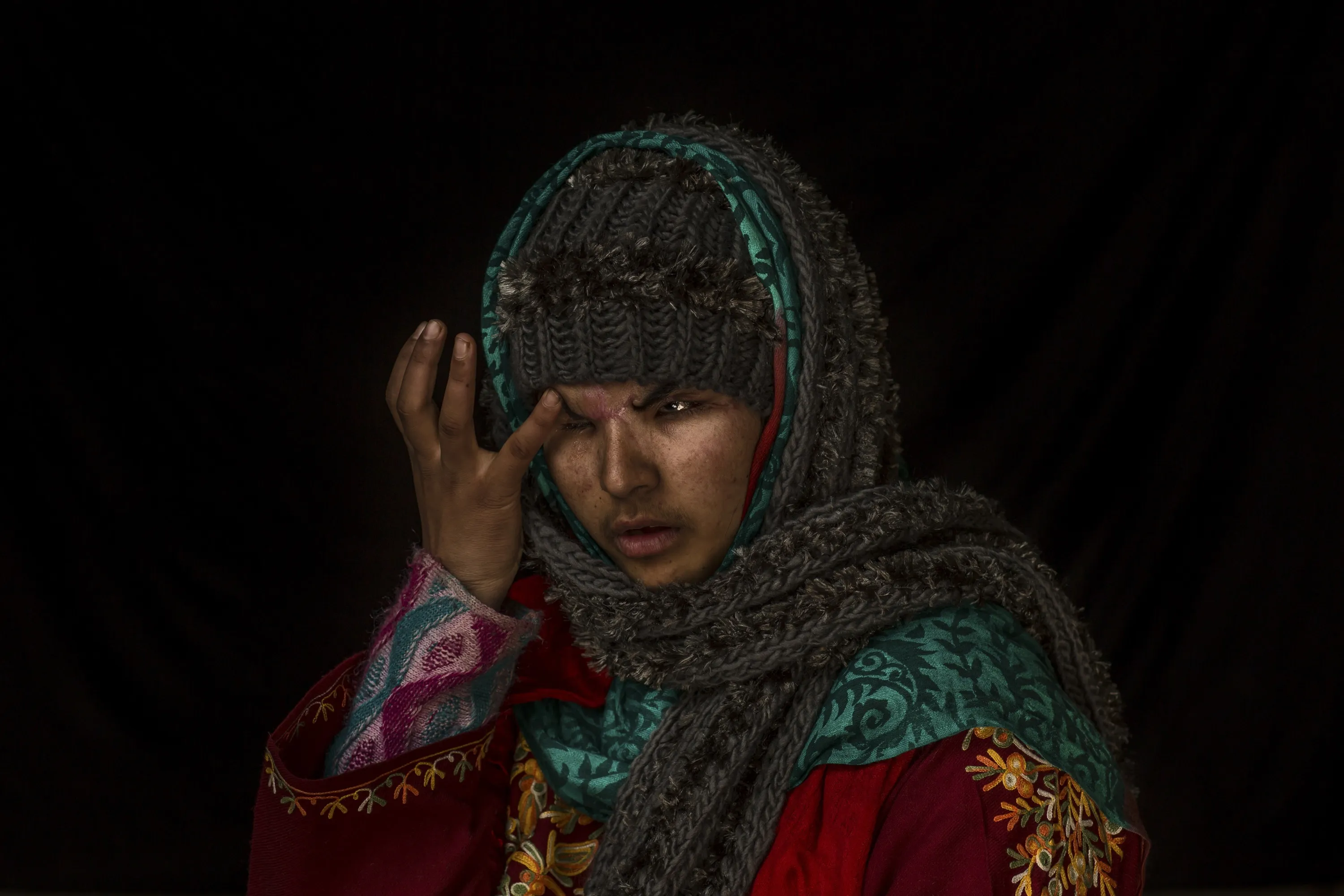 In this November 29, 2016 photo, Insha Mushtaq Malik poses for a portrait inside her home in Sedow, south Kashmir. Insha said she was standing by the window of her village home watching protesters and troops skirmish when more than a 100 pellets hit her face, “Everything looks dark and black”. Five months after she lost her eyes. Malik is still learning how to deal with her loss, both emotionally and practically. (Photo by Bernat Armangue/AP Photo)