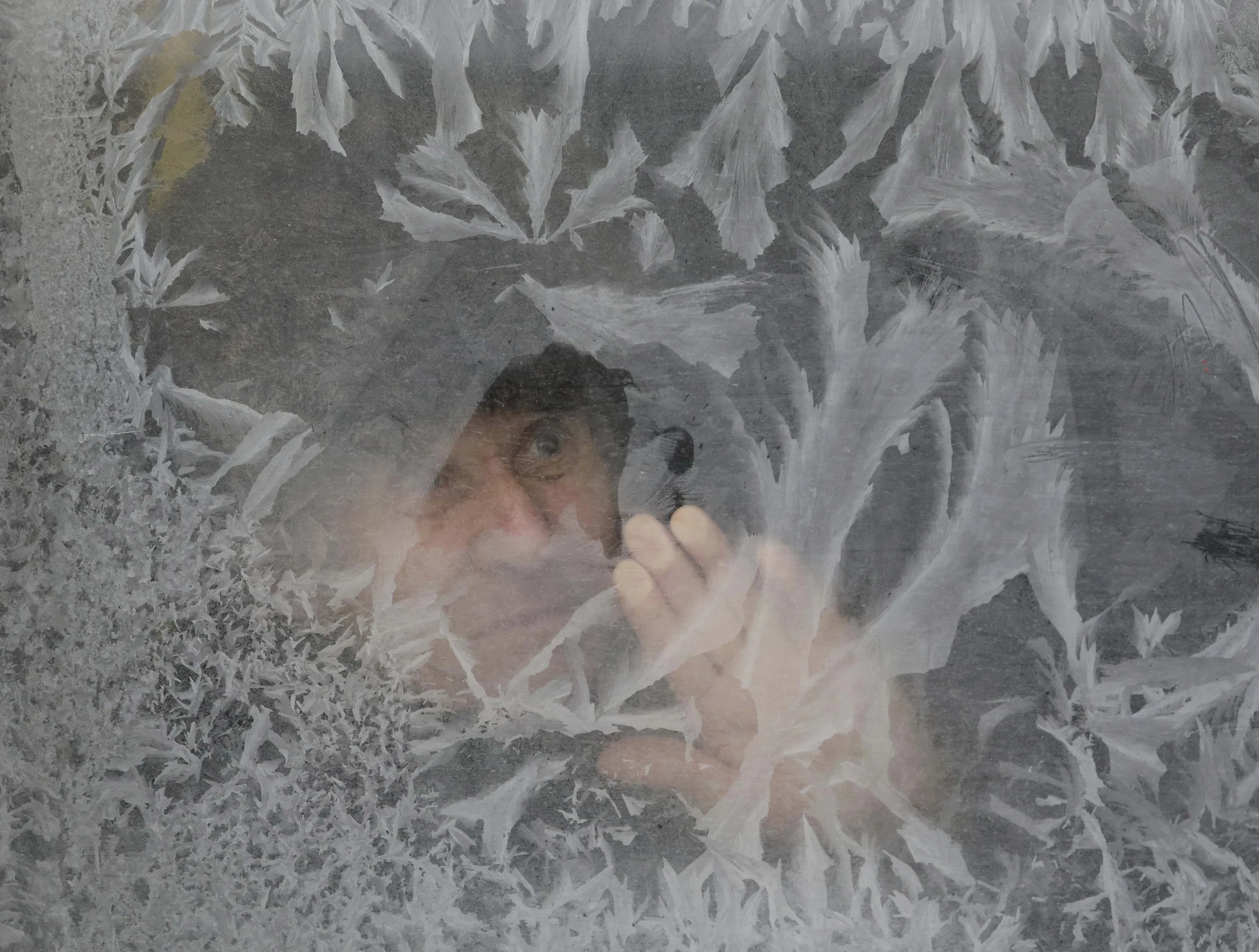 A man looks through a frosted bus window with the air temperature at about minus 16 degrees Celsius (3.2 degrees Fahrenheit), in Lviv, Ukraine January 6, 2017. (Photo by Gleb Garanich/Reuters)