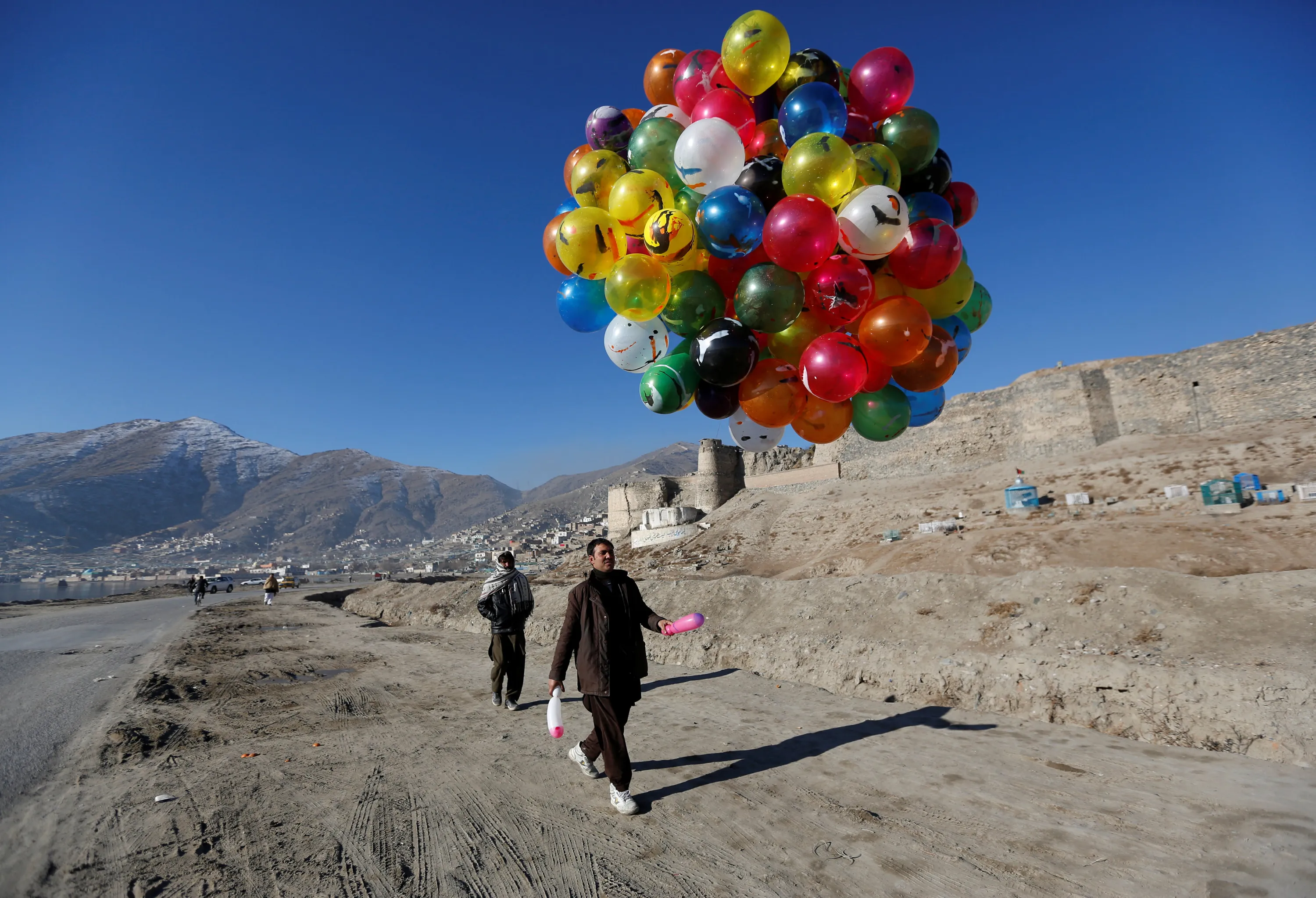 An Afghan man holds balloons for sale in Kabul, Afghanistan January 8, 2017. (Photo by Mohammad Ismail/Reuters)