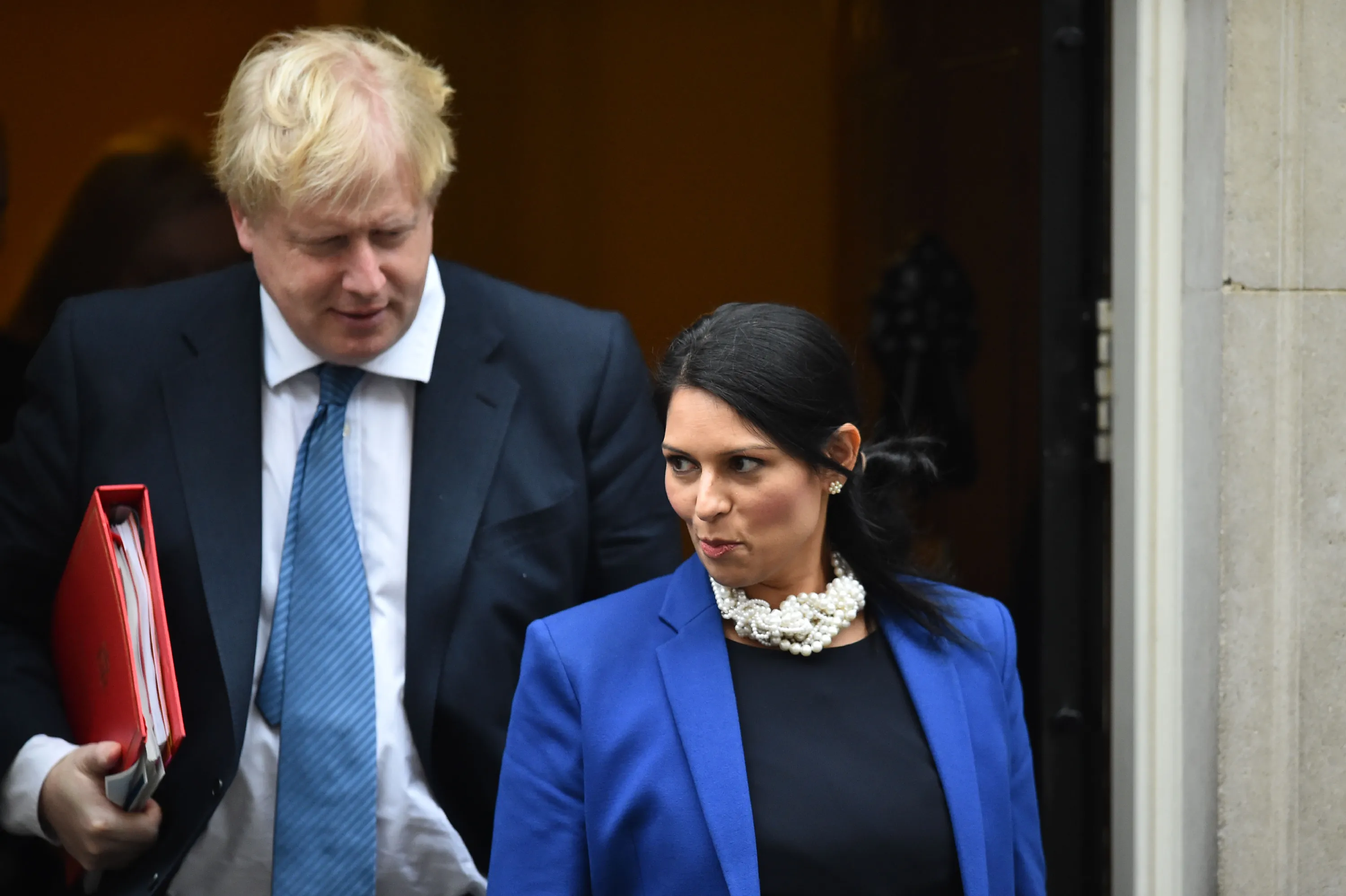 British foreign minister Boris Johnson and Britain' s International Development Secretary Priti Patel leave the weekly meeting of the cabinet at 10 Downing Street in central London on January 31, 2017. (Photo by Glyn Kirk/AFP Photo)