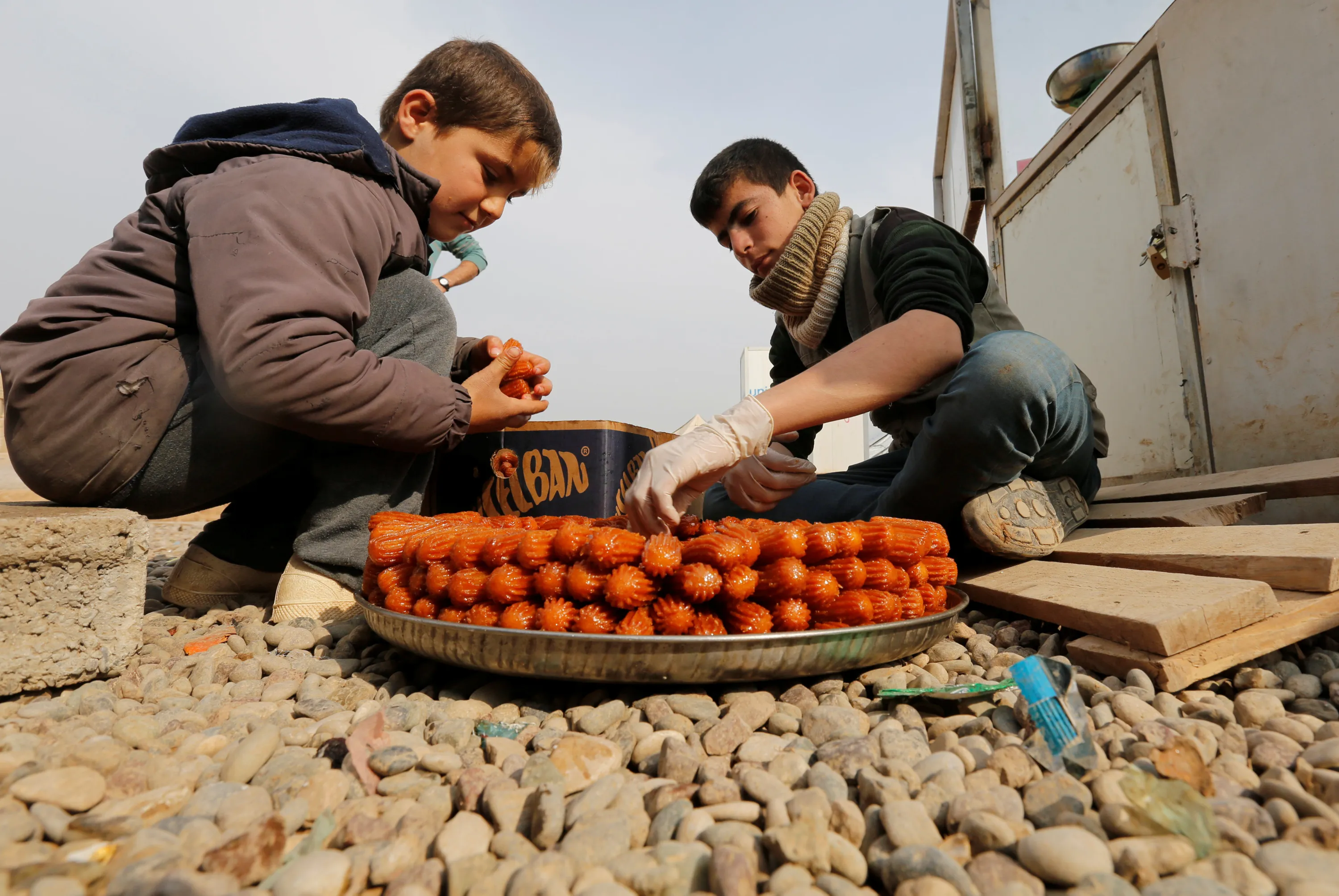 Displaced Iraqi children arrange sweets to sell at Hassan Sham camp, east of Mosul, Iraq, Feruary 12, 2017. (Photo by Muhammad Hamed/Reuters)