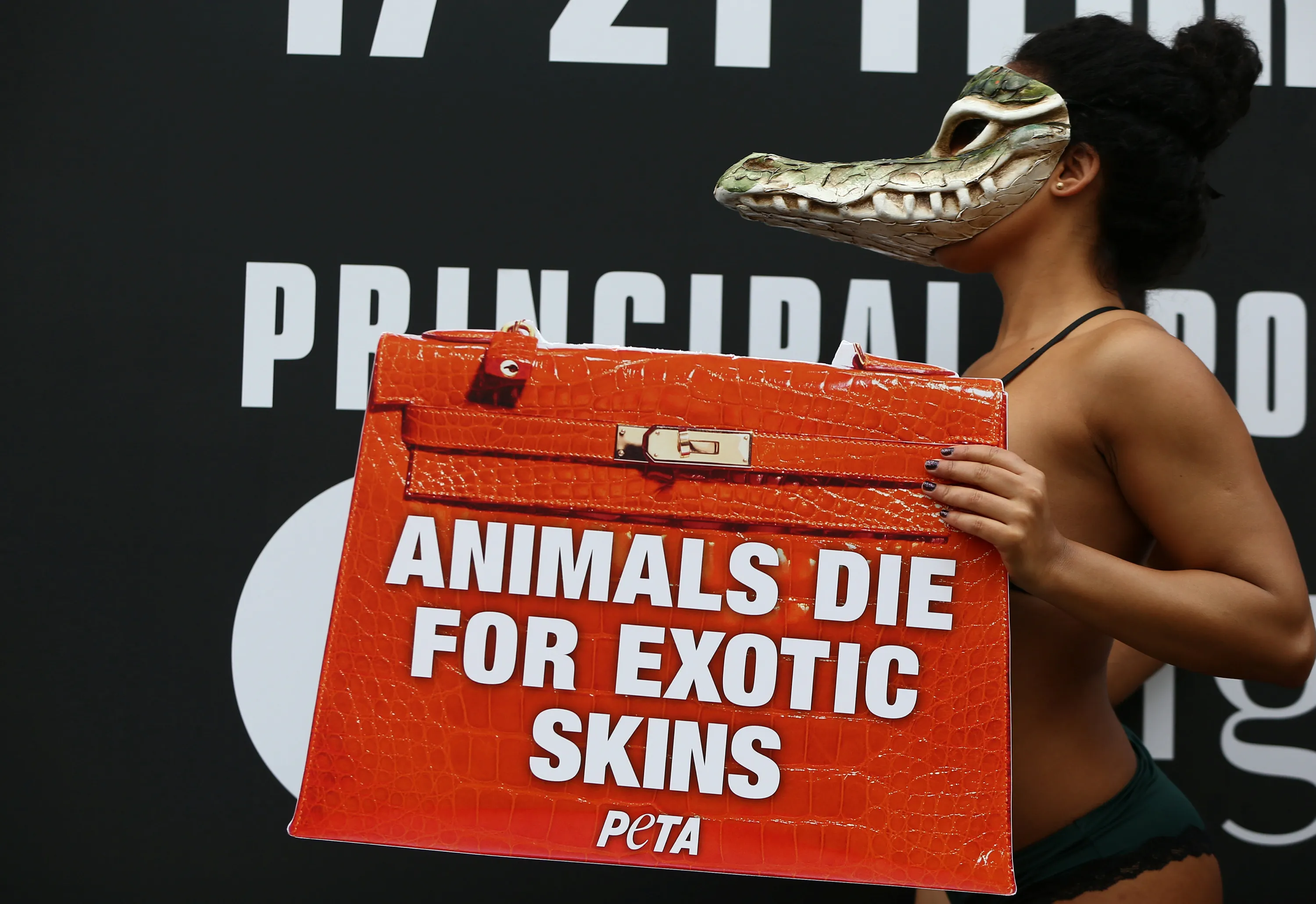 Peta model in crocodile mask protests against the use of crocodile skins in fashion during London Fashion Week in London, Britain February 17, 2017. (Photo by Neil Hall/Reuters)