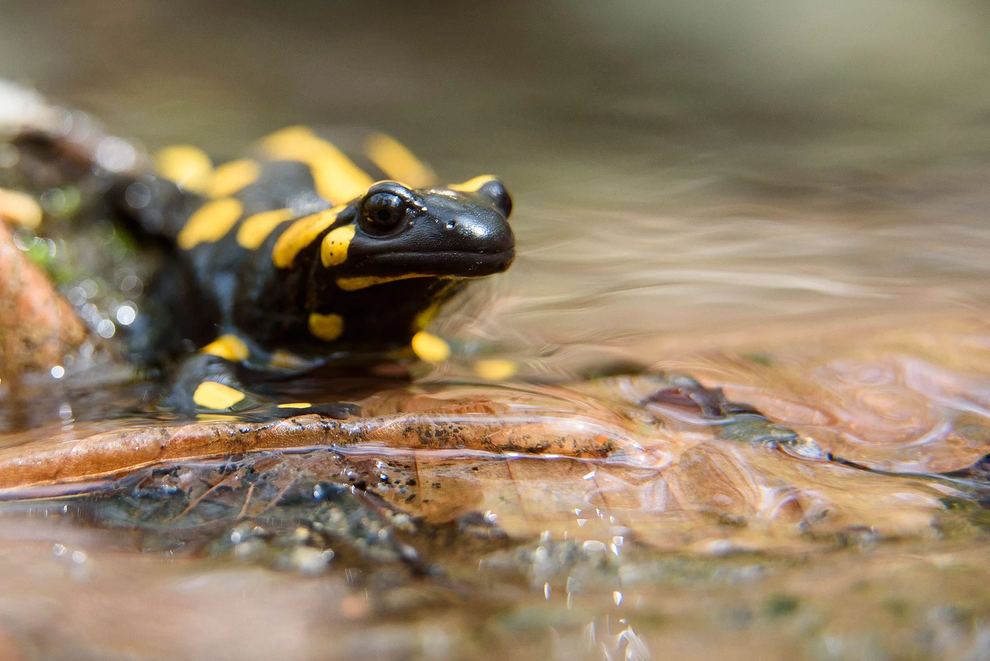 A fire salamander (Salamandra salamandra) by a brook at Somosko near Salgotarjan, 109 kms northeast of Budapest, Hungary, 11 April 2017. (Photo by Peter Komka/EPA)