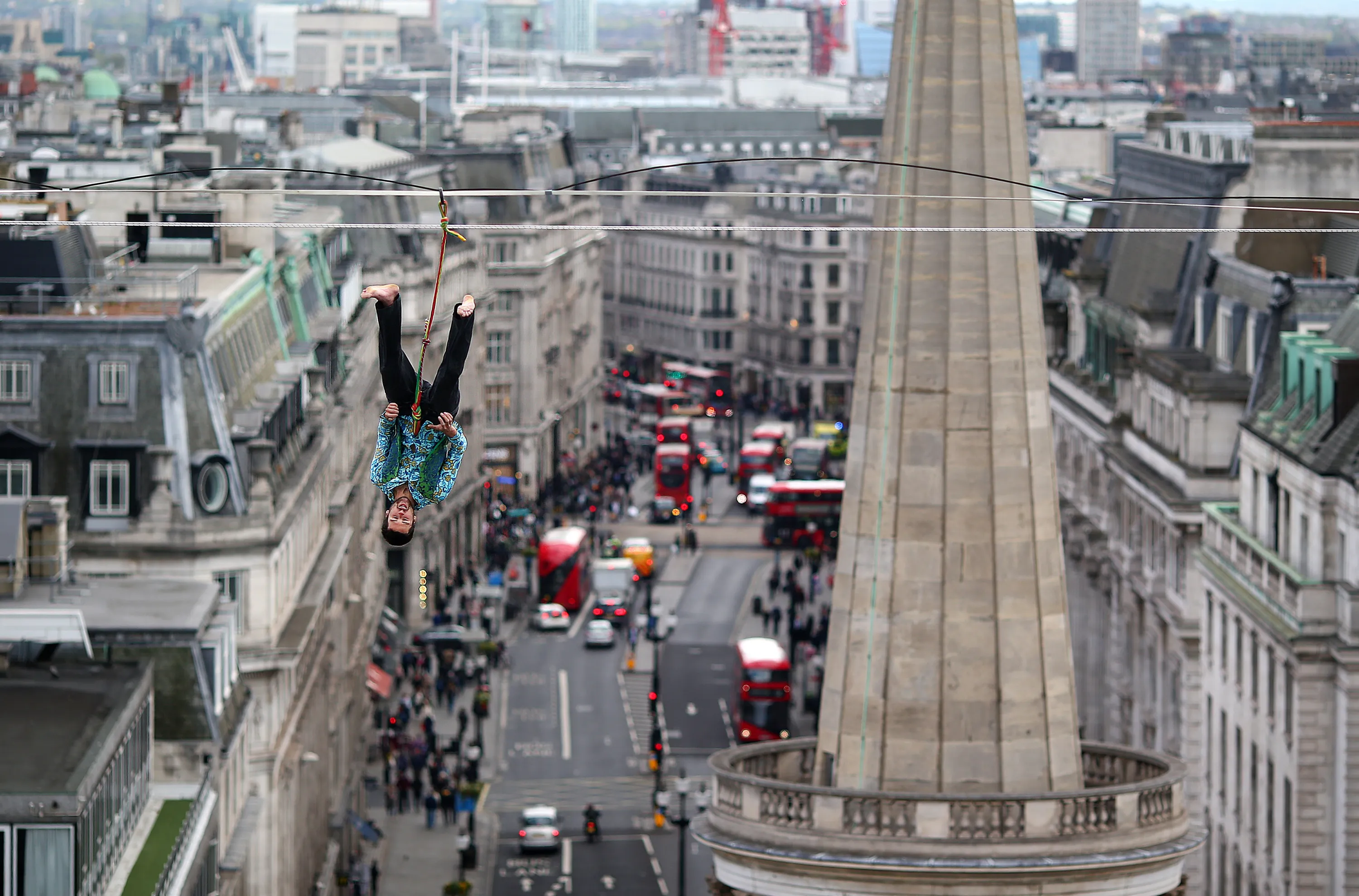 One of The Flying Frenchies, stars of the new film The Free Man, rehearse at BBC Broadcasting House on April 25, 2017 in London, England. (Photo by Charlie Crowhurst/Getty Images)