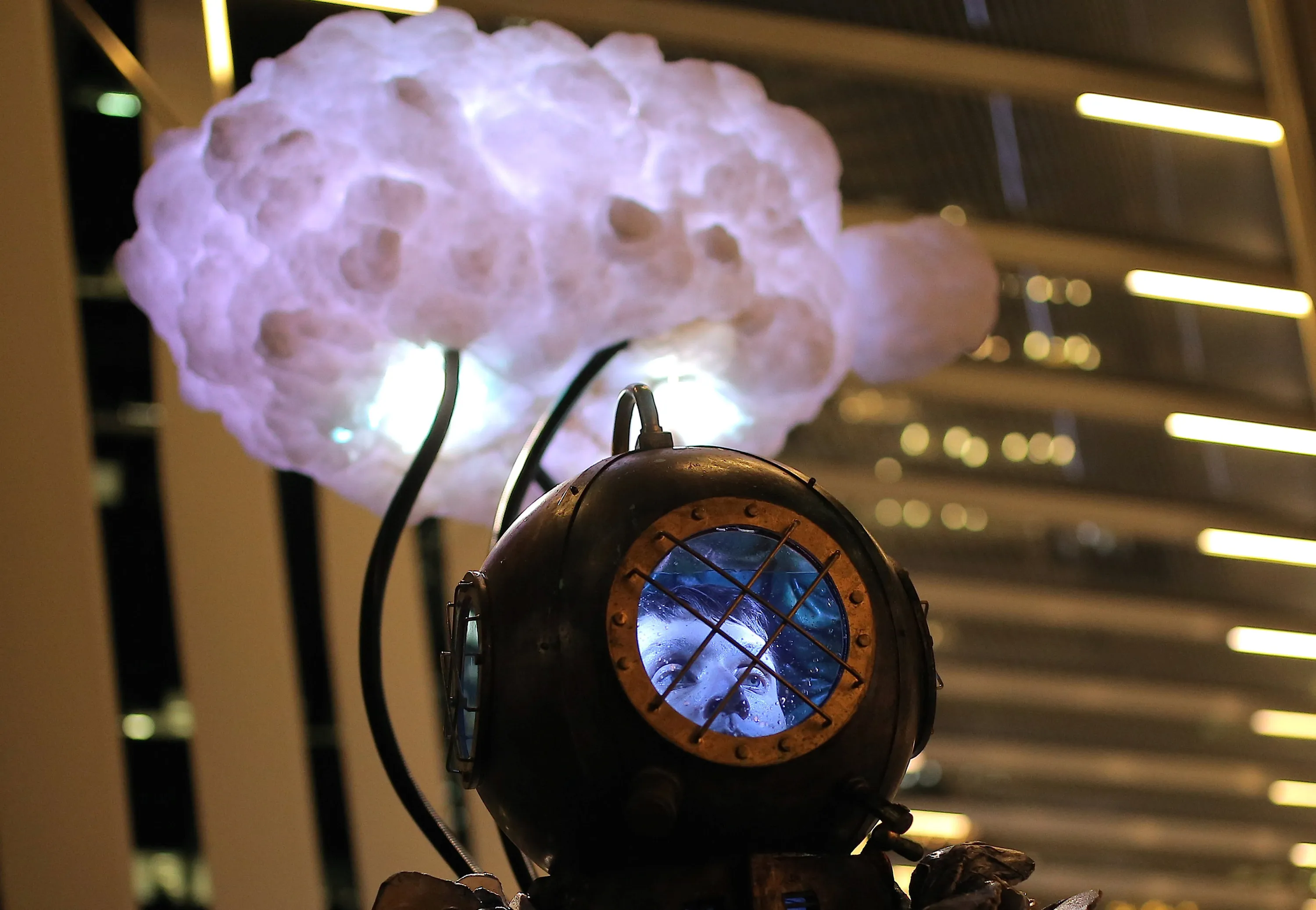 A man wearing an illuminated atmospheric diving suit as part of an installation titled “What Lies Beneath” looks at members of the public during the Vivid Sydney festival of light and sound in Sydney, Australia, May 26, 2017. (Photo by Steven Saphore/Reuters)
