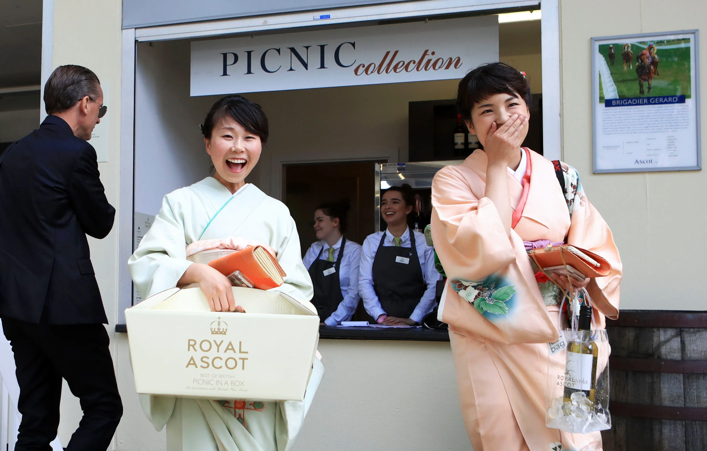 Women wear traditional Japanese kimonos attend day 4 of Royal Ascot 2017 at Ascot Racecourse on June 23, 2017 in Ascot, England. (Photo by John Walton/PA Wire)