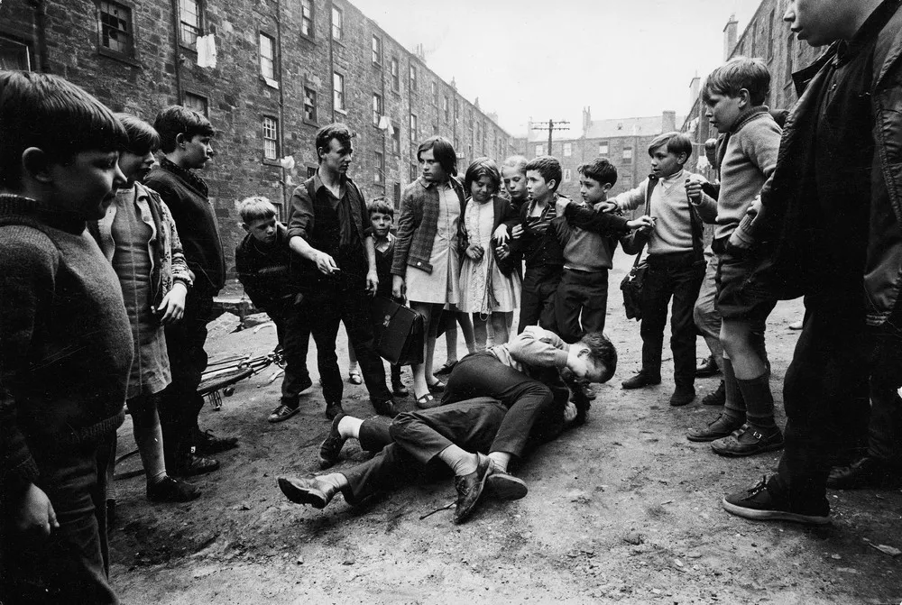 Street fighting in the Gorbals in Glasgow, a port city on the River Clyde in Scotland's western Lowlands on May 18, 1968. (Photo by David Newell-Smith/GNM Archive/The Observer/The Guardian)
