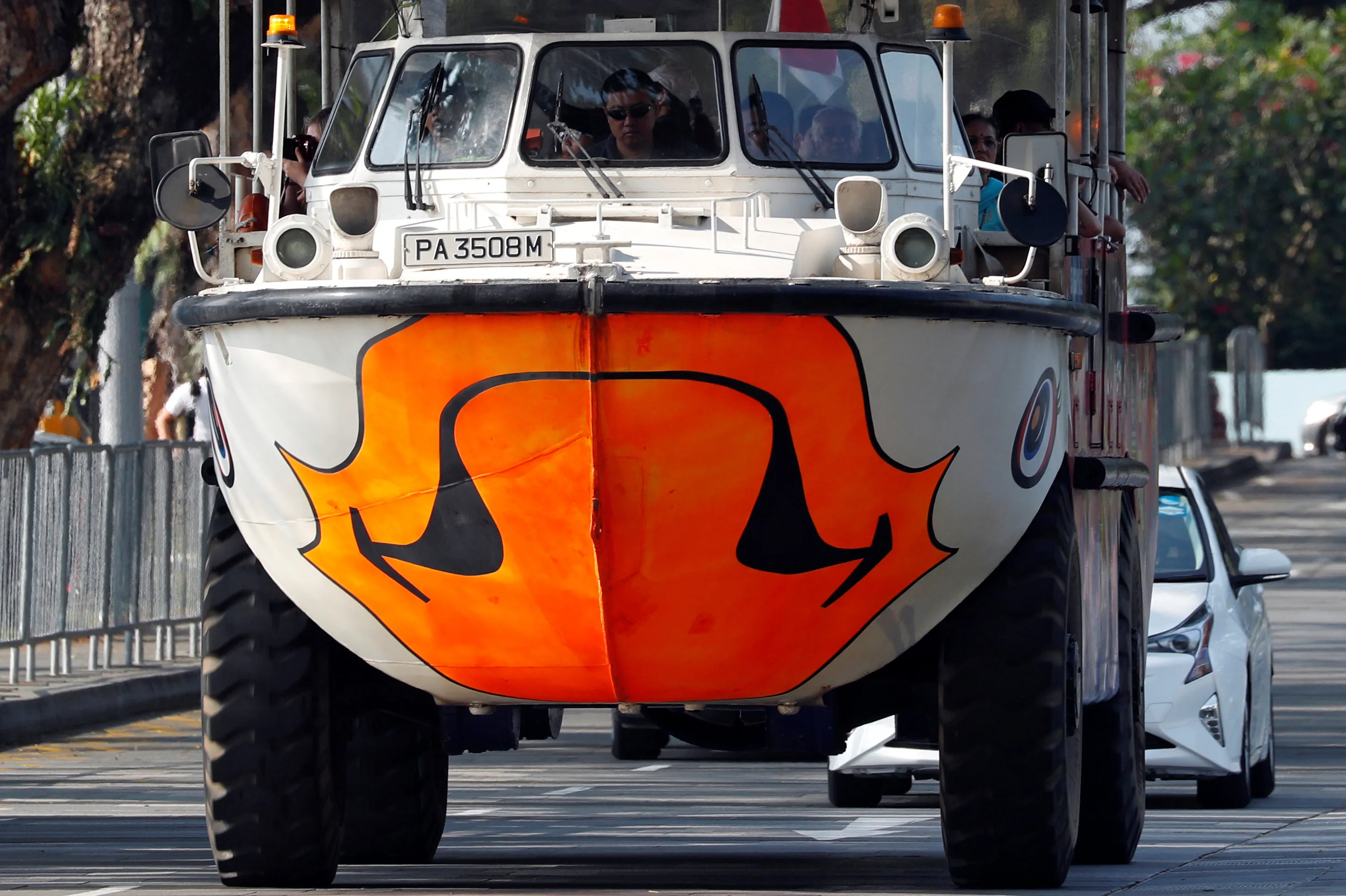 A Duck Tour amphibious vehicle carries tourists on a sight-seeing trip in Singapore August 2, 2017. (Photo by Edgar Su/Reuters)