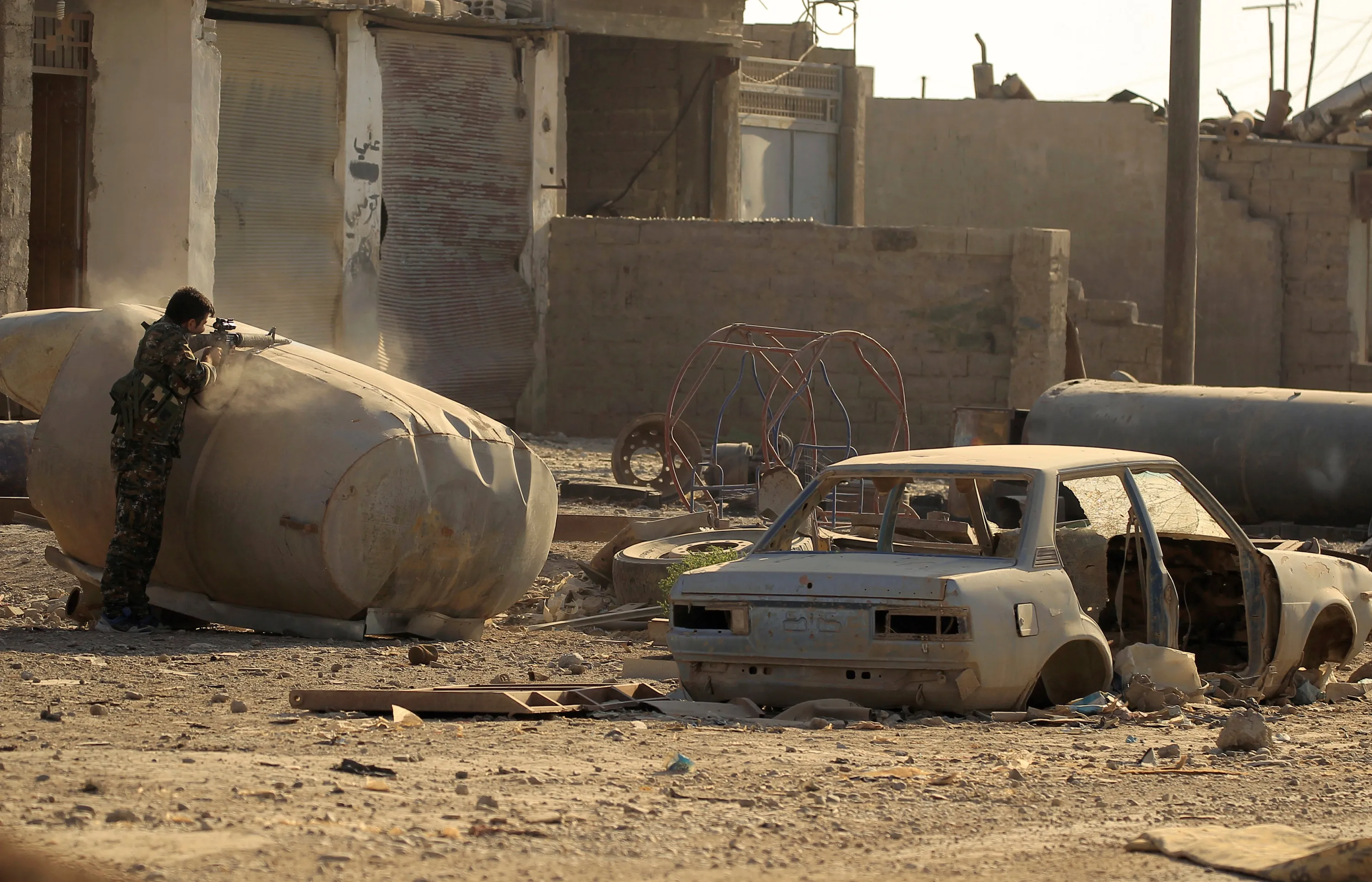 A member of the Syrian Democratic Forces shoots to detonate a mine found on their road during the fighting with Islamic State militants in Raqqa, Syria August 11, 2017. (Photo by Zohra Bensemra/Reuters)
