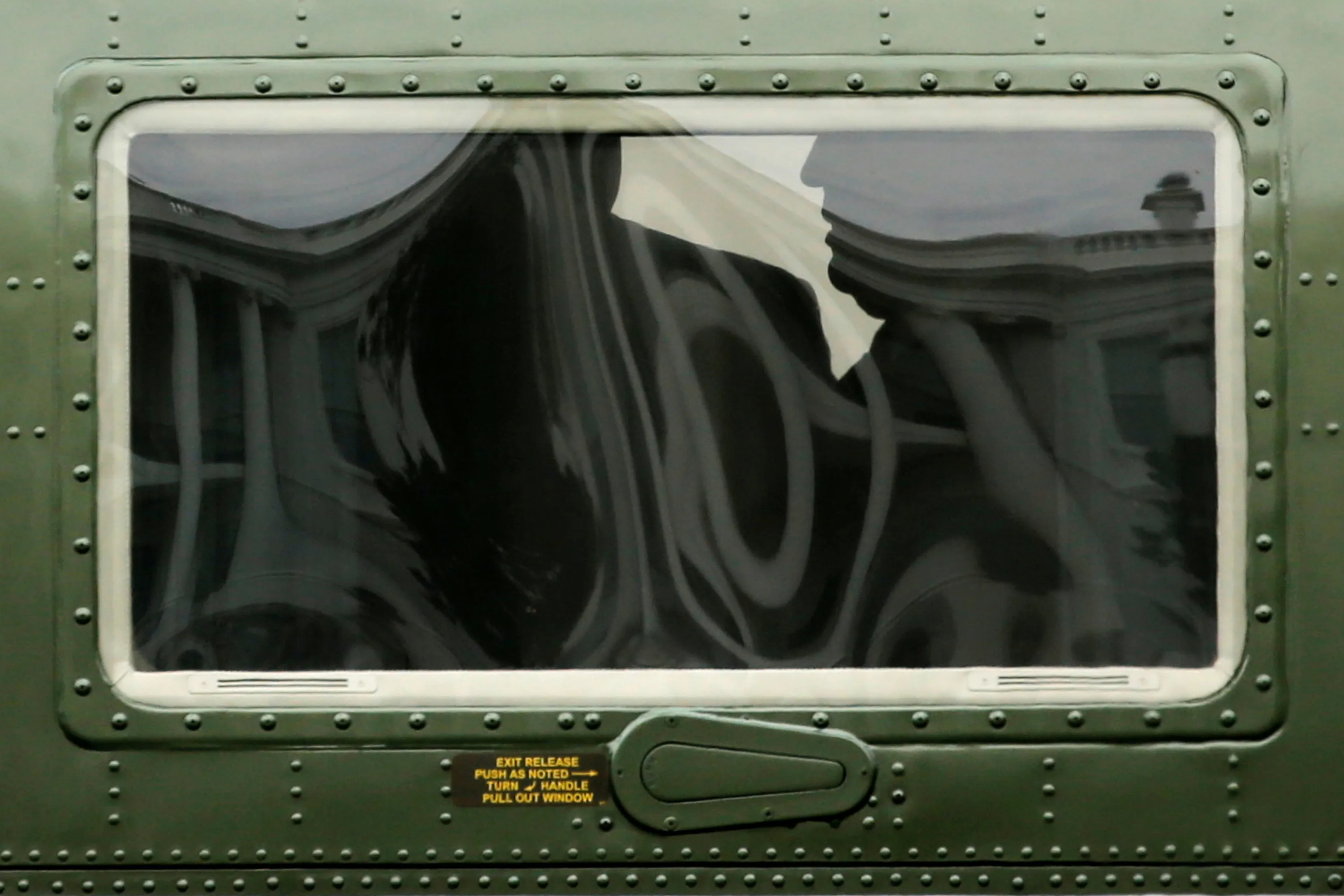 U.S. President Donald Trump (R, silhouetted in window) arrives via Marine One helicopter at the White House in Washington, U.S. August 14, 2017. (Photo by Jonathan Ernst/Reuters)