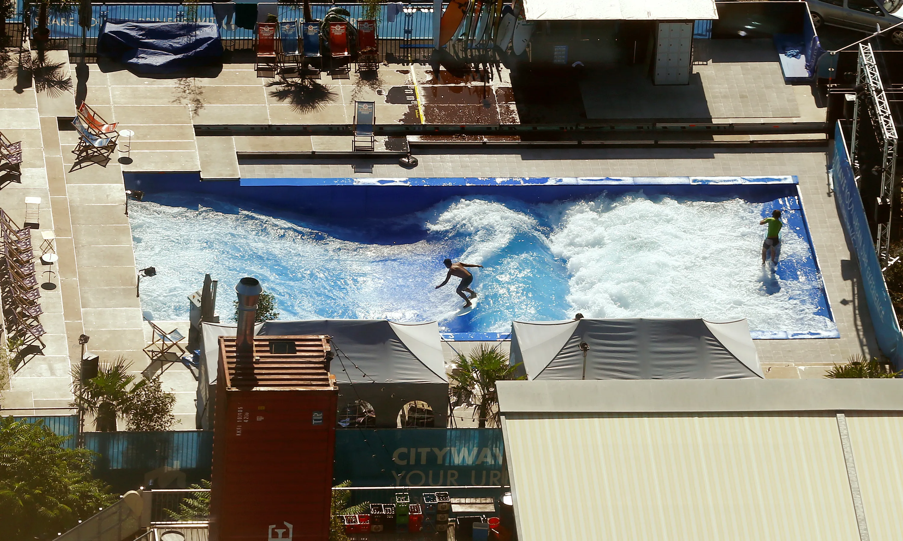 A man surfs on an artificial wave at the Citywave pool during sunny weather in Zurich, Switzerland August 18, 2017. (Photo by Arnd Wiegmann/Reuters)