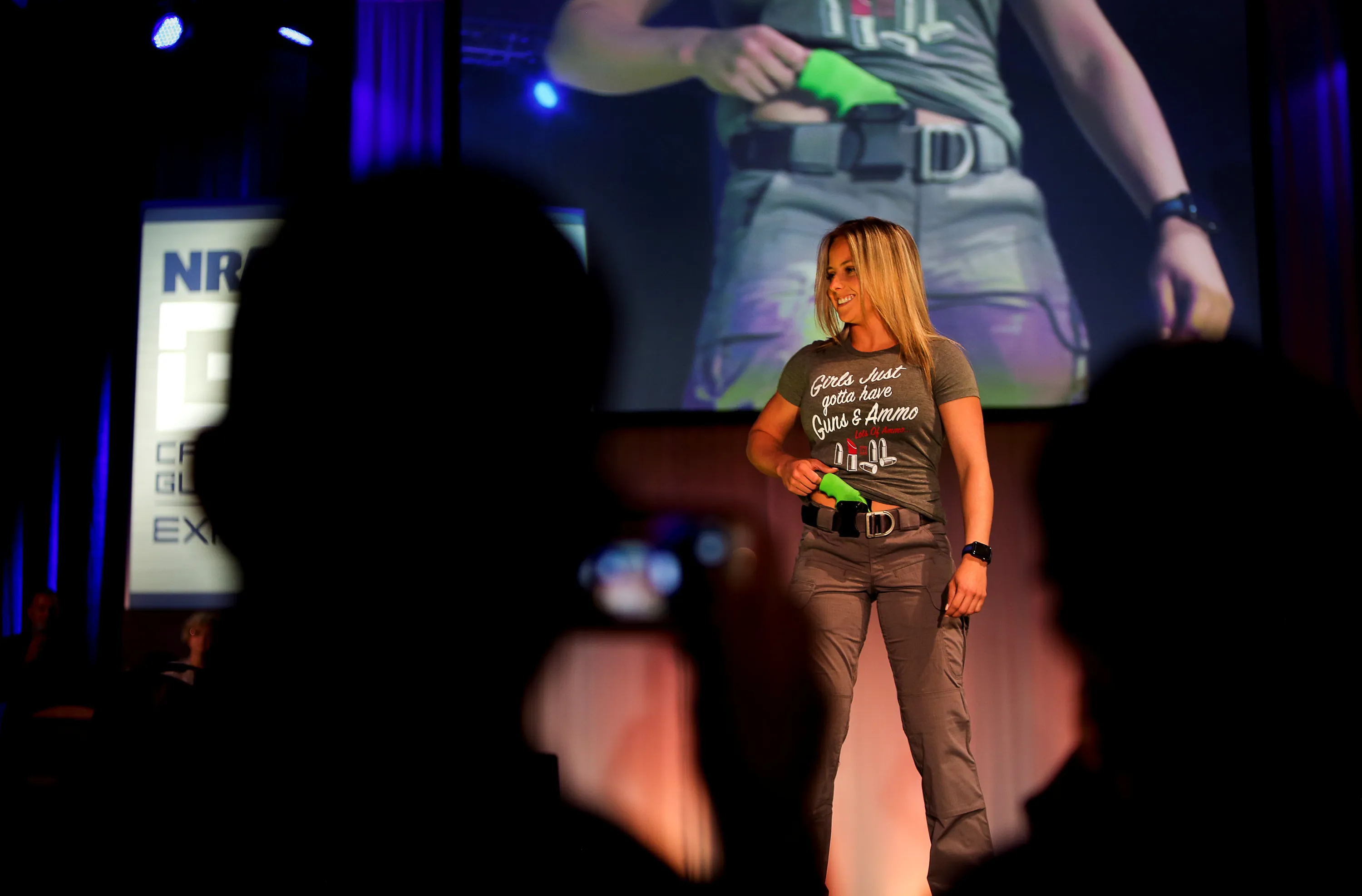Isbel Montano with Maiden Apparel shows off a concealed carry holster during the National Rifle Association (NRA) Carry Guard Expo Fashion Show in Milwaukee, Wisconsin, U.S., August 25, 2017. (Photo by Ben Brewer/Reuters)