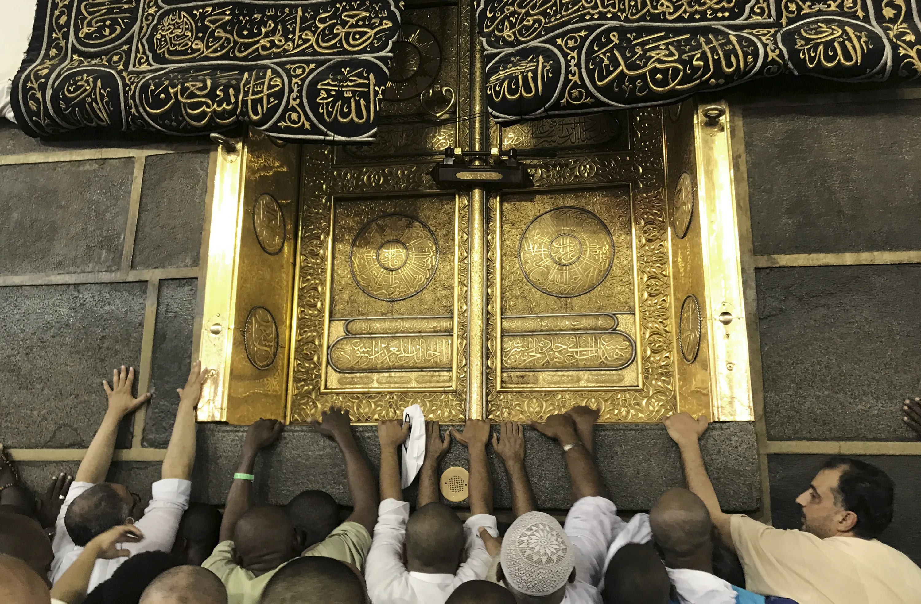 Muslim pilgrims touch the Kaaba stone, the cubic building at the Grand Mosque, ahead of the annual Hajj pilgrimage in the Muslim holy city of Mecca, Saudi Arabia, early Monday, August 28, 2017. (Photo by Khalil Hamra/AP Photo)