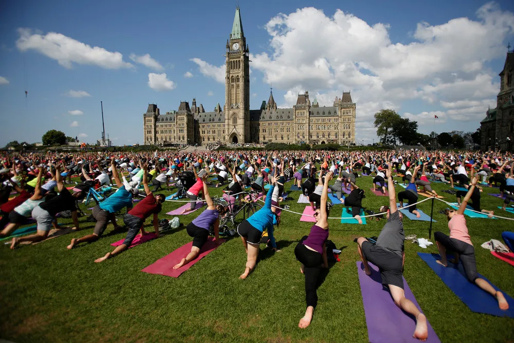 People take part in a weekly yoga class on the front lawn of Parliament Hill in Ottawa, Ontario, Canada, August 30, 2017. (Photo by Chris Wattie/Reuters)