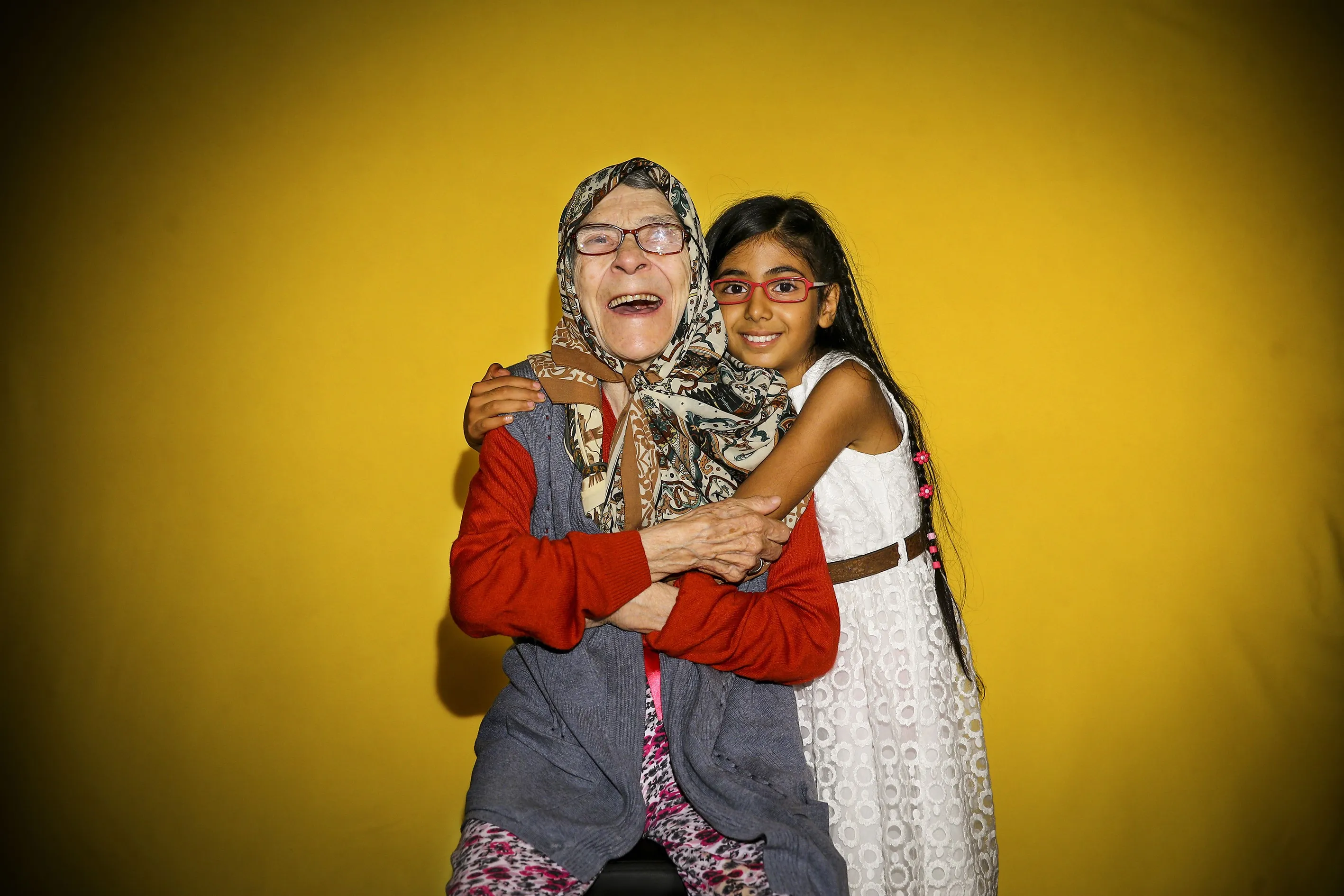 An old woman and a young girl are seen as they smile as part of the World Smile Day celebrations at a nursing home in Ankara, Turkey on October 4, 2017. (Photo by Okan Ozer/Anadolu Agency/Getty Images)