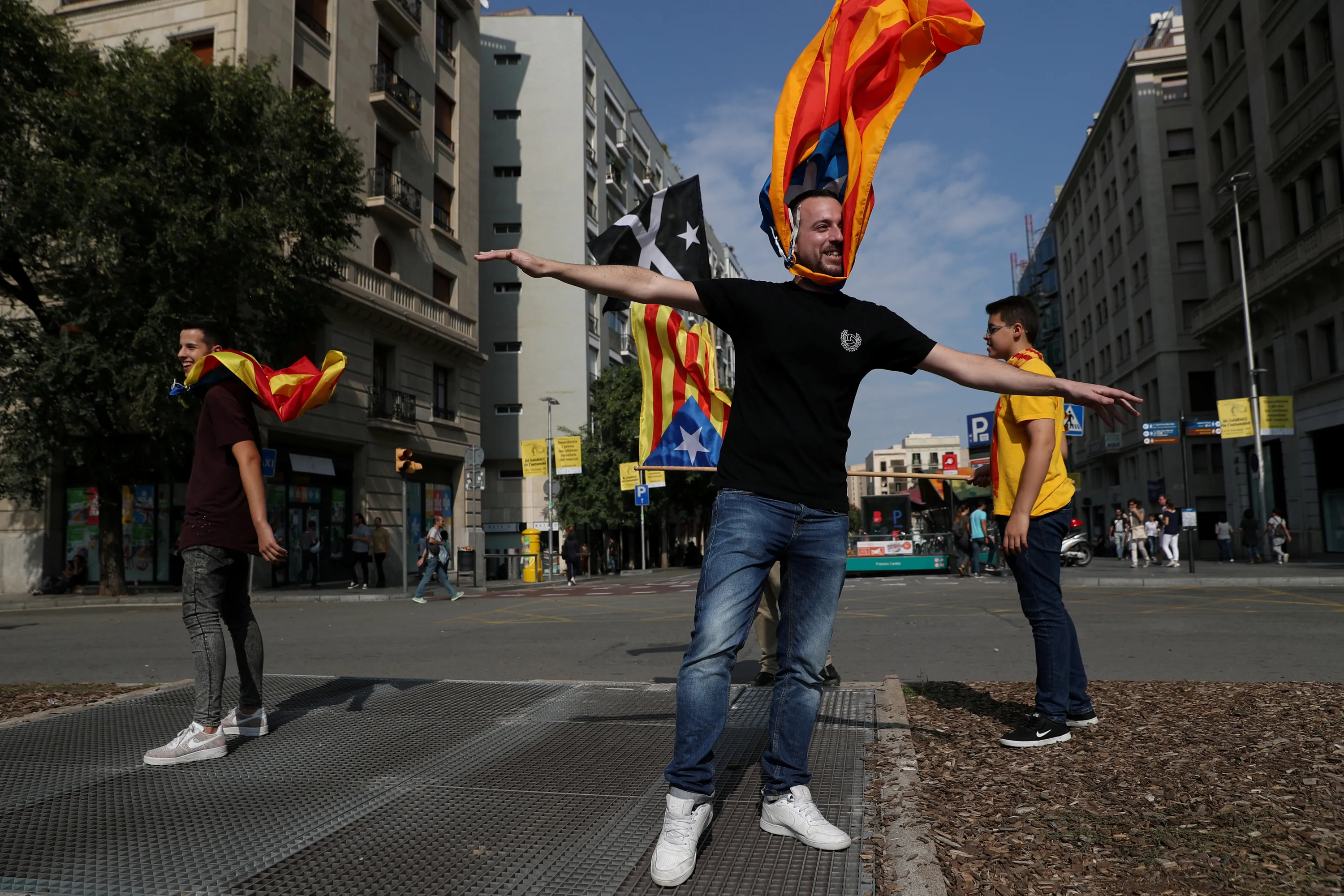 People hold on to Catalan separatist flags on top of an air vent two days after the banned independence referendum in Barcelona, Spain, October 3, 2017. (Photo by Susana Vera/Reuters)