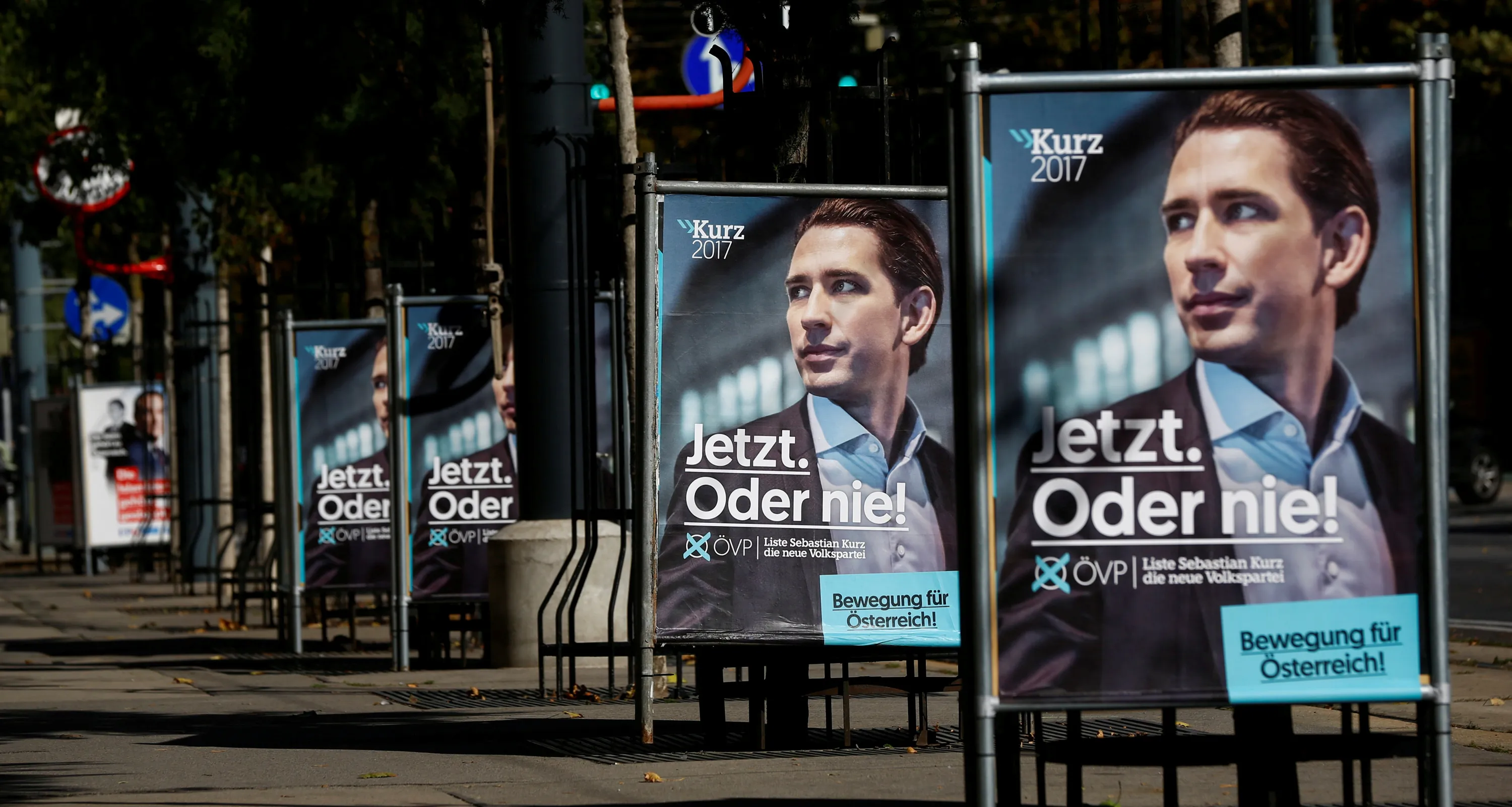An election campaign posters of Austrian People's Party (OeVP) top candidate and Foreign Minister Sebastian Kurz are seen in Vienna, Austria, October 5, 2017. Posters read “Now or never!” and “Movement for Austria”. (Photo by Leonhard Foeger/Reuters)