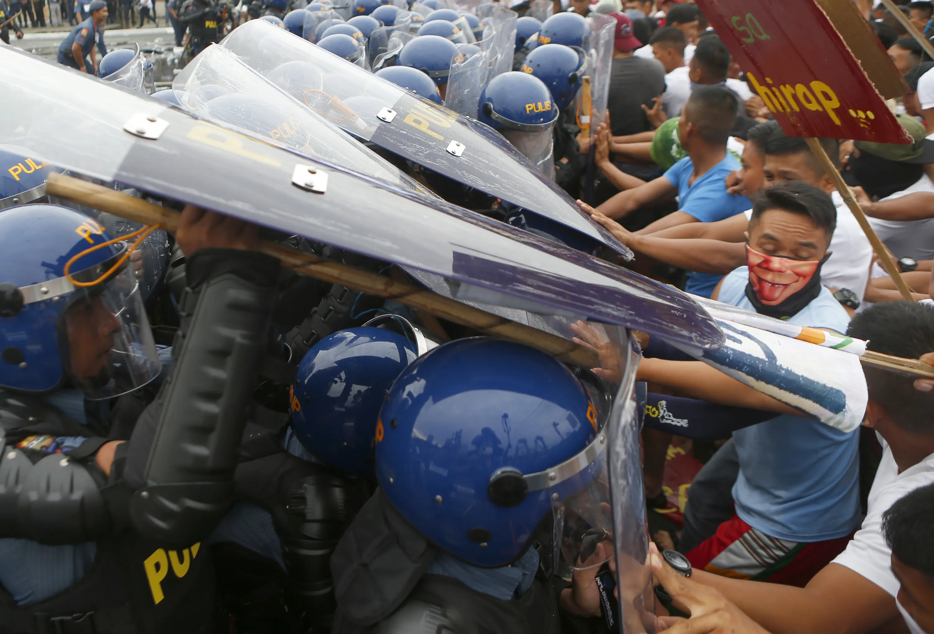 Riot police demonstrate their crowd dispersal operation during a send off ceremony and deployment to provide security for next week's ASEAN Summit and other related summits which the country is hosting in Manila, Philippines Sunday, November 5, 2017. ASEAN leaders and its Dialogue Partners such as the United States, Russia, China, Japan, South Korea, India, Turkey, Australia, Canada, New Zealand, the European Council and U.N. Secretary General Antonio Guterres are attending the summit. (Photo by Bullit Marquez/AP Photo)