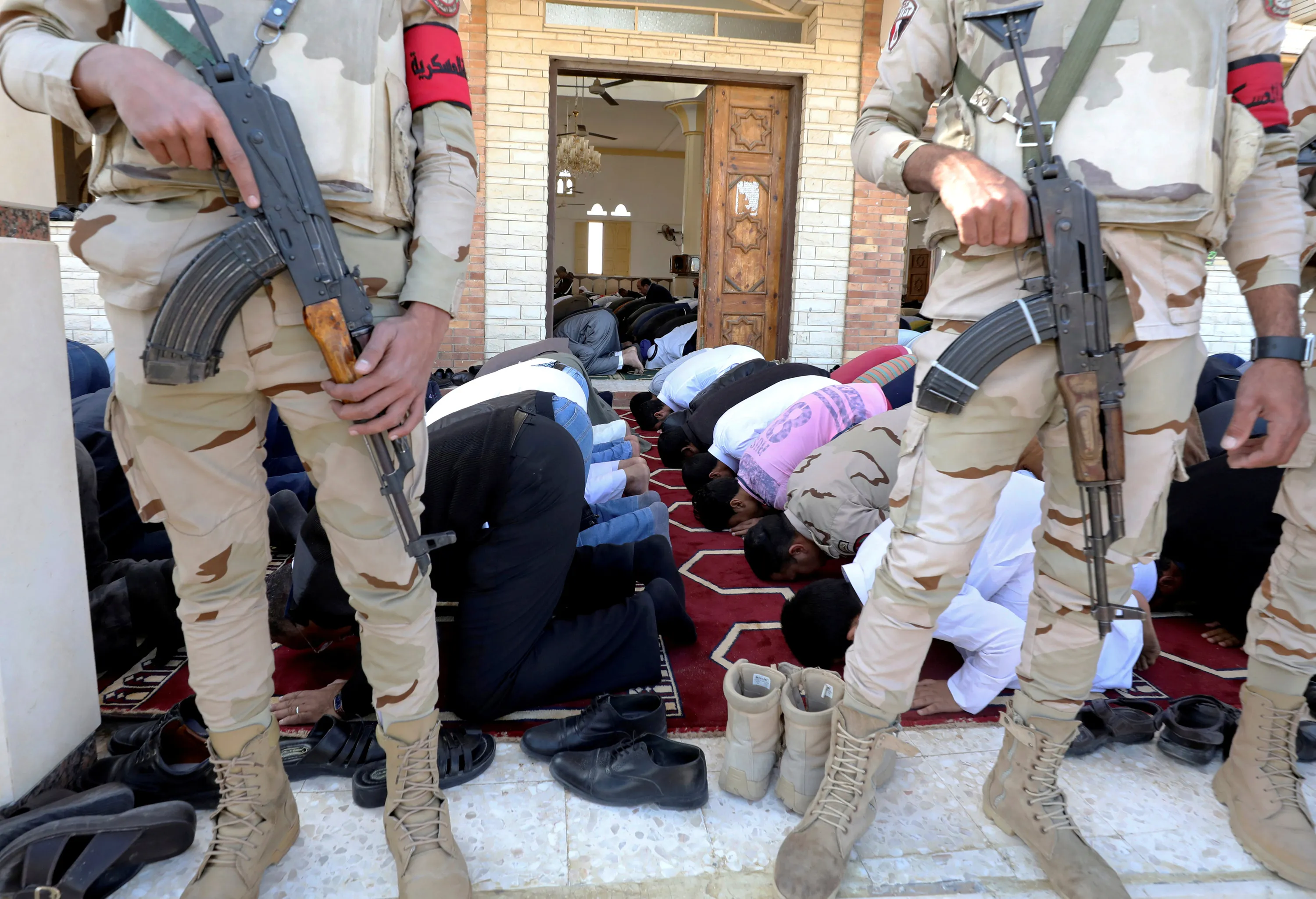 Military secure worshippers outside Al Rawdah mosque during the first Friday prayer after the attack in Bir Al-Abed, Egypt, December 1, 2017. (Photo by Mohamed Abd El Ghany/Reuters)