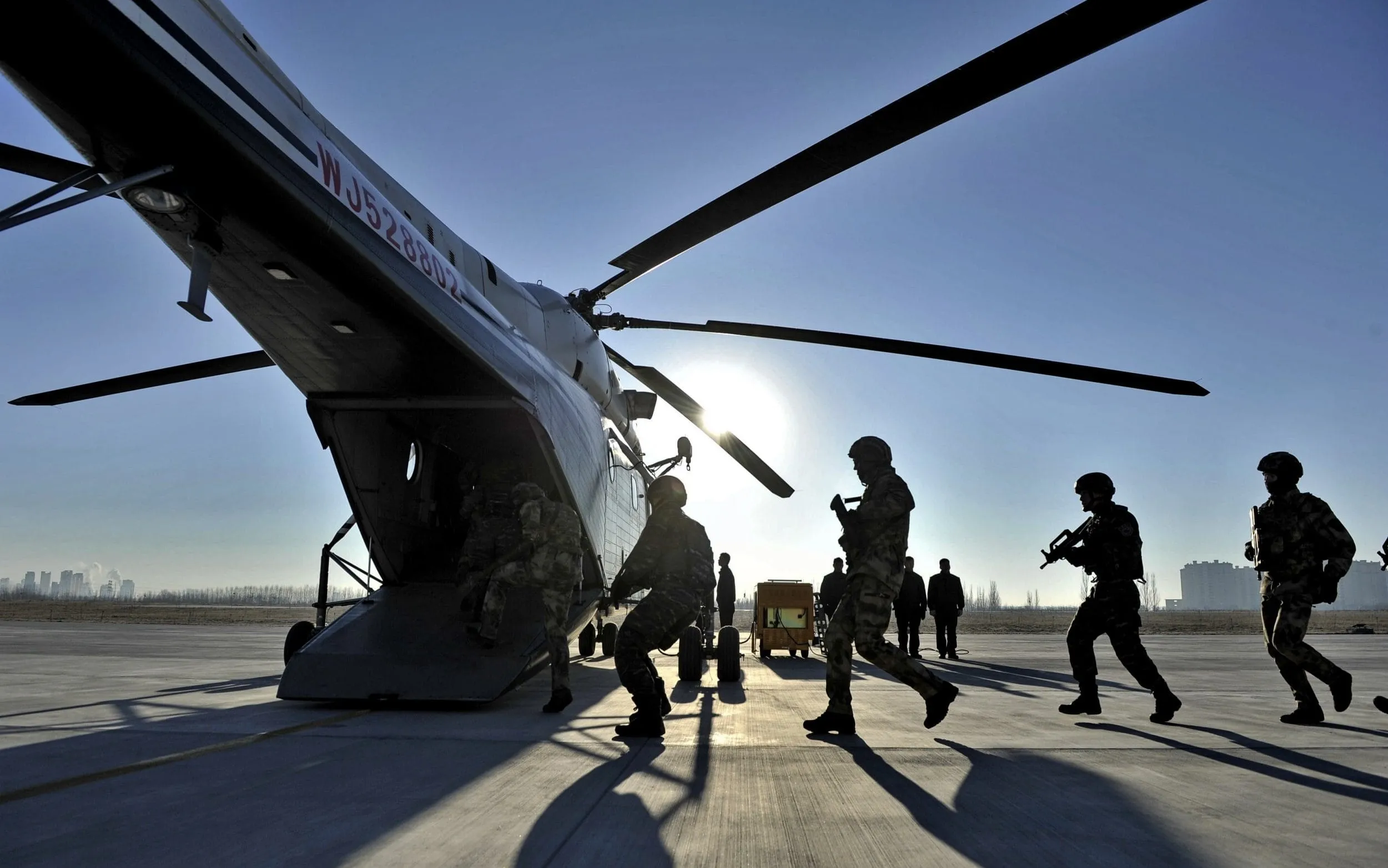 Soldiers in action during a drill on day three of the China-Russia counter-terrorist Cooperation-2017 on December 5, 2017 in Yinchuan, Ningxia Hui Autonomous Region of China. The 12-day China-Russia counter-terrorist drill “Cooperation-2017” kicked off on Dec 2 in Yinchuan, China. (Photo by VCG/VCG via Getty Images