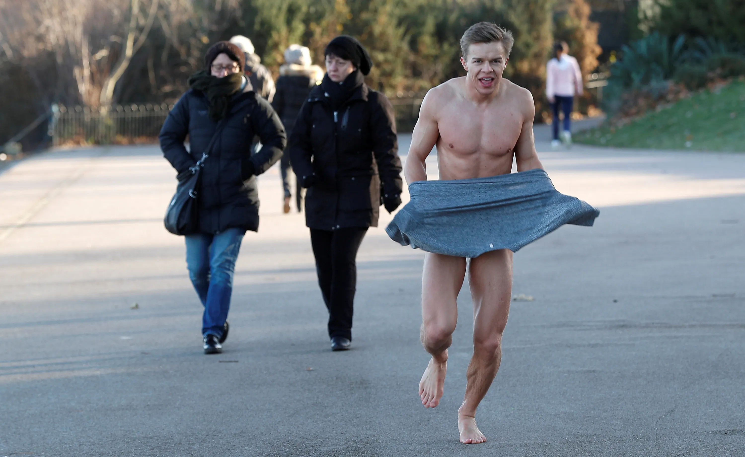 A swimmer dresses after emerging from an open-air swim in near freezing temperatures in the Serpentine lake in Hyde Park, London, Britain December 9, 2017. (Photo by Peter Nicholls/Reuters)