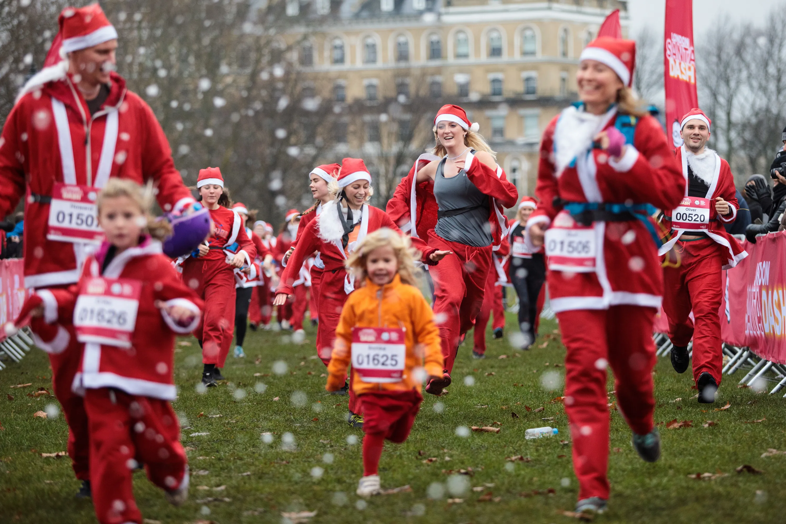 Runners in Father Christmas outfits take part in the annual Santa Dash run on Clapham Common on December 3, 2017 in London, England. Two thousand runners take part in Santa Dash today, around 5 and 10km courses around Clapham Common, in aid of Great Ormond Street Hospital for children. (Photo by Jack Taylor/Getty Images)