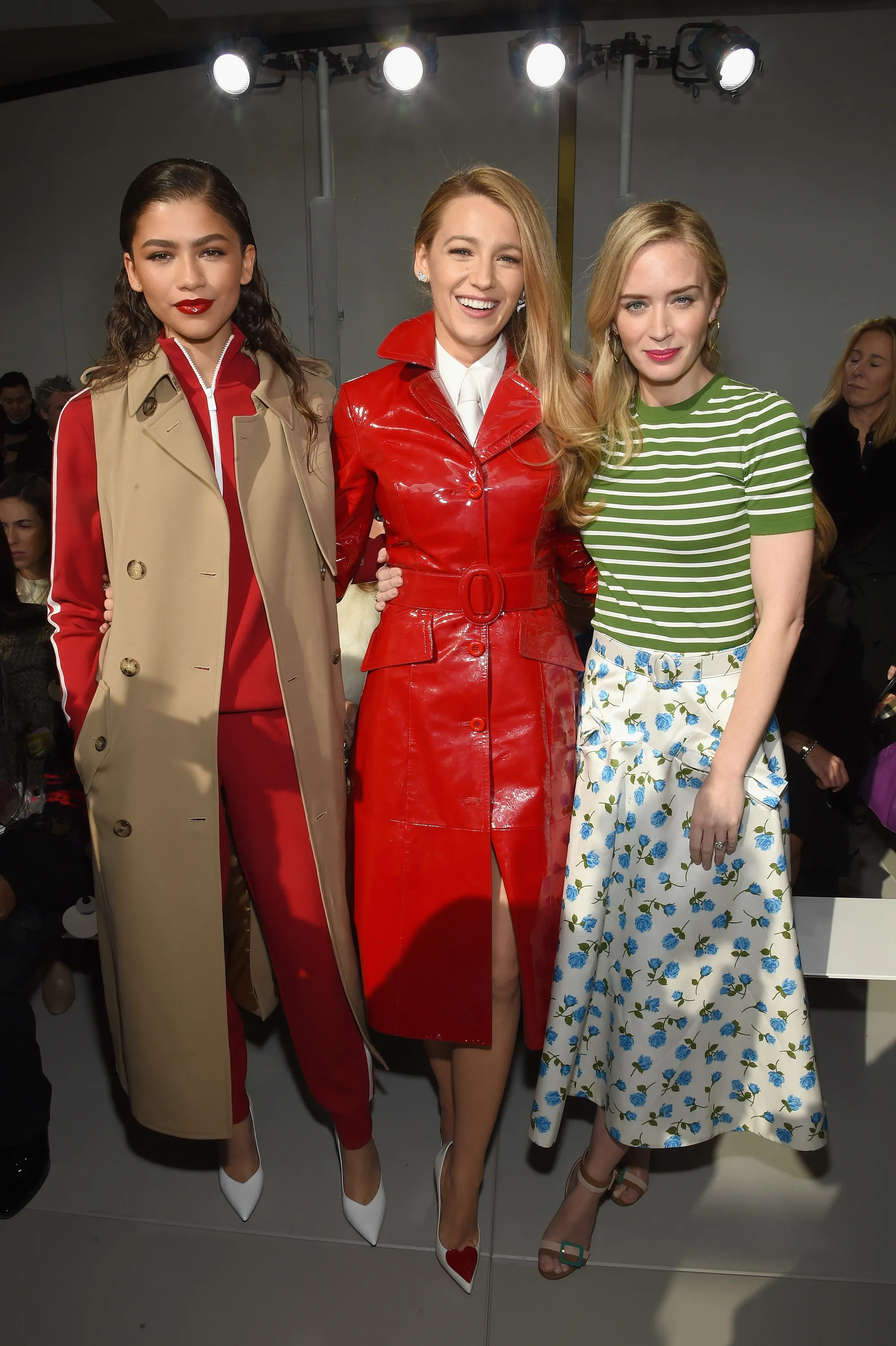 (L-R) Zendaya, Blake Lively, and Emily Blunt attend the Michael Kors Collection Fall 2018 Runway Show at Vivian Beaumont Theatre at Lincoln Center on February 14, 2018 in New York City. (Photo by Dimitrios Kambouris/Getty Images for Michael Kors)