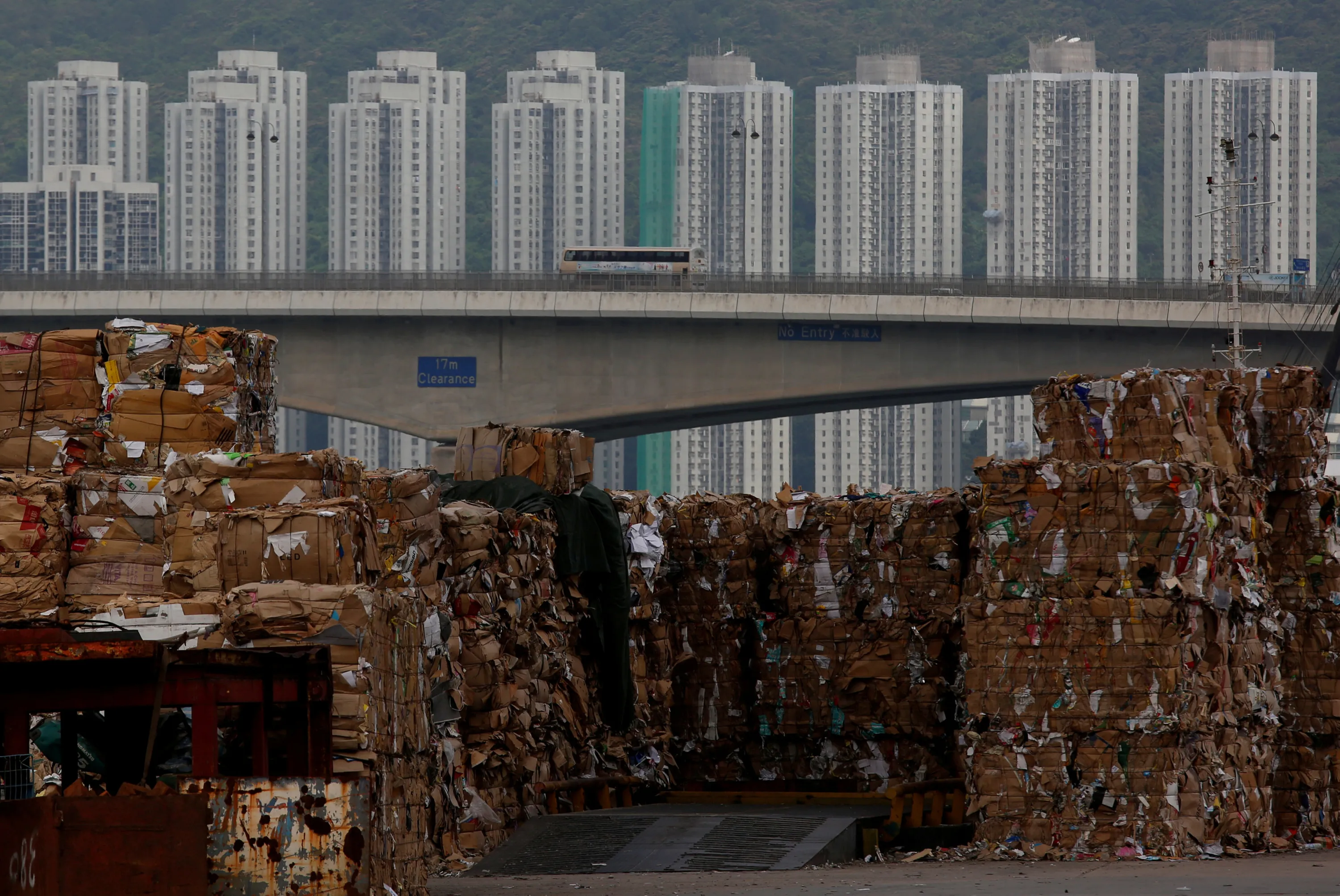 Tonnes of waste paper to be shipped to mainland China are piled up at a dock in Hong Kong, China September 15, 2017. (Photo by Bobby Yip/Reuters)