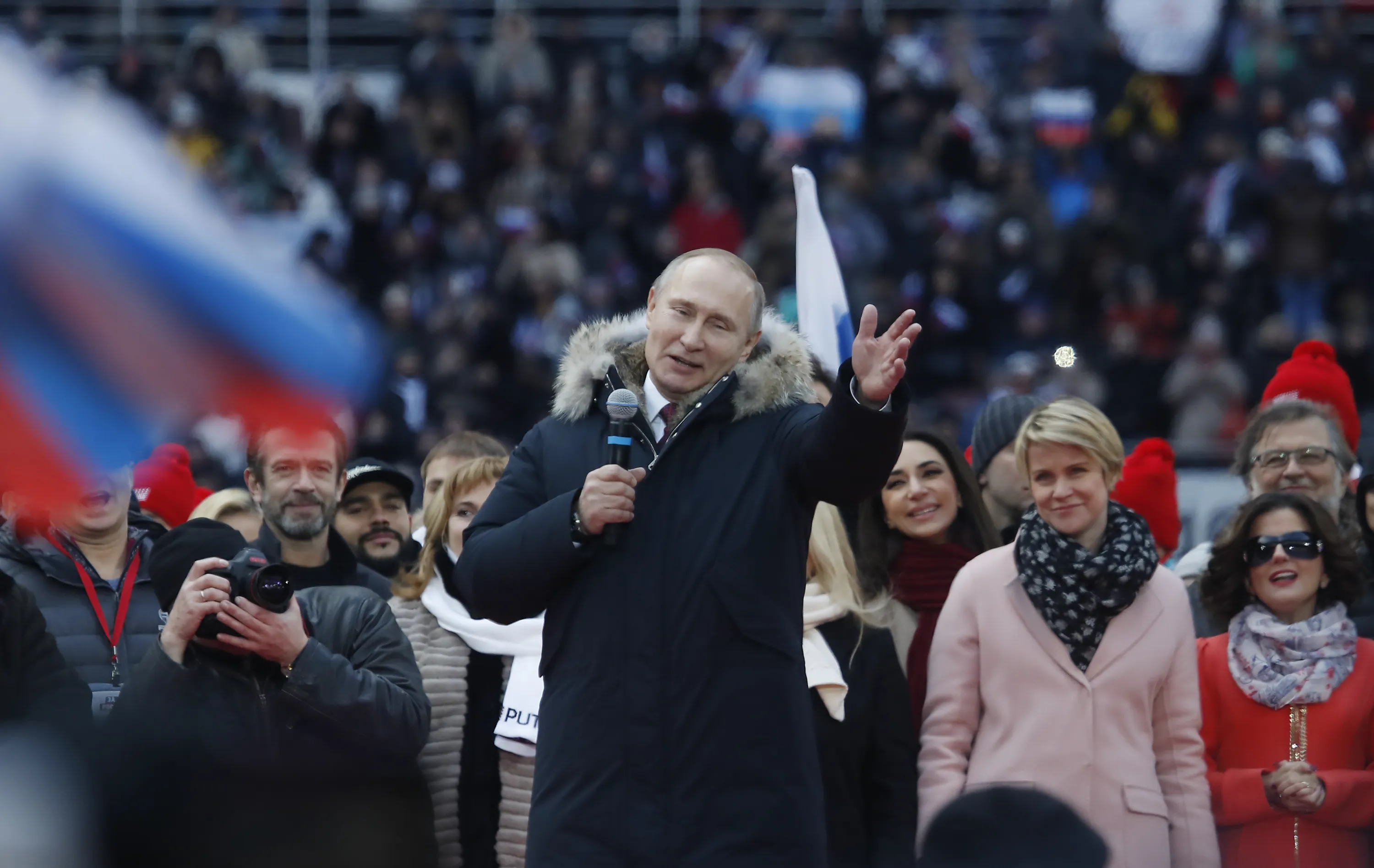 Russian President Vladimir Putin delivers a speech during a rally to support his bid in the upcoming presidential election at Luzhniki Stadium in Moscow, Russia, March 3, 2018. (Photo by Maxim Shemetov/Reuters)