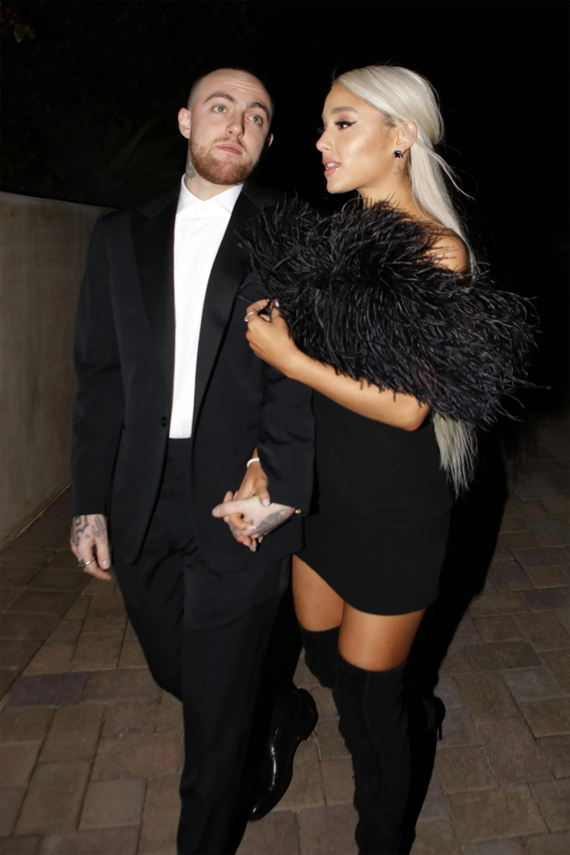 Rapper Mac Miller and singer Ariana Grande are seen attending an Oscar party on March 4, 2018 in Los Angeles, California. (Photo by GC Images)