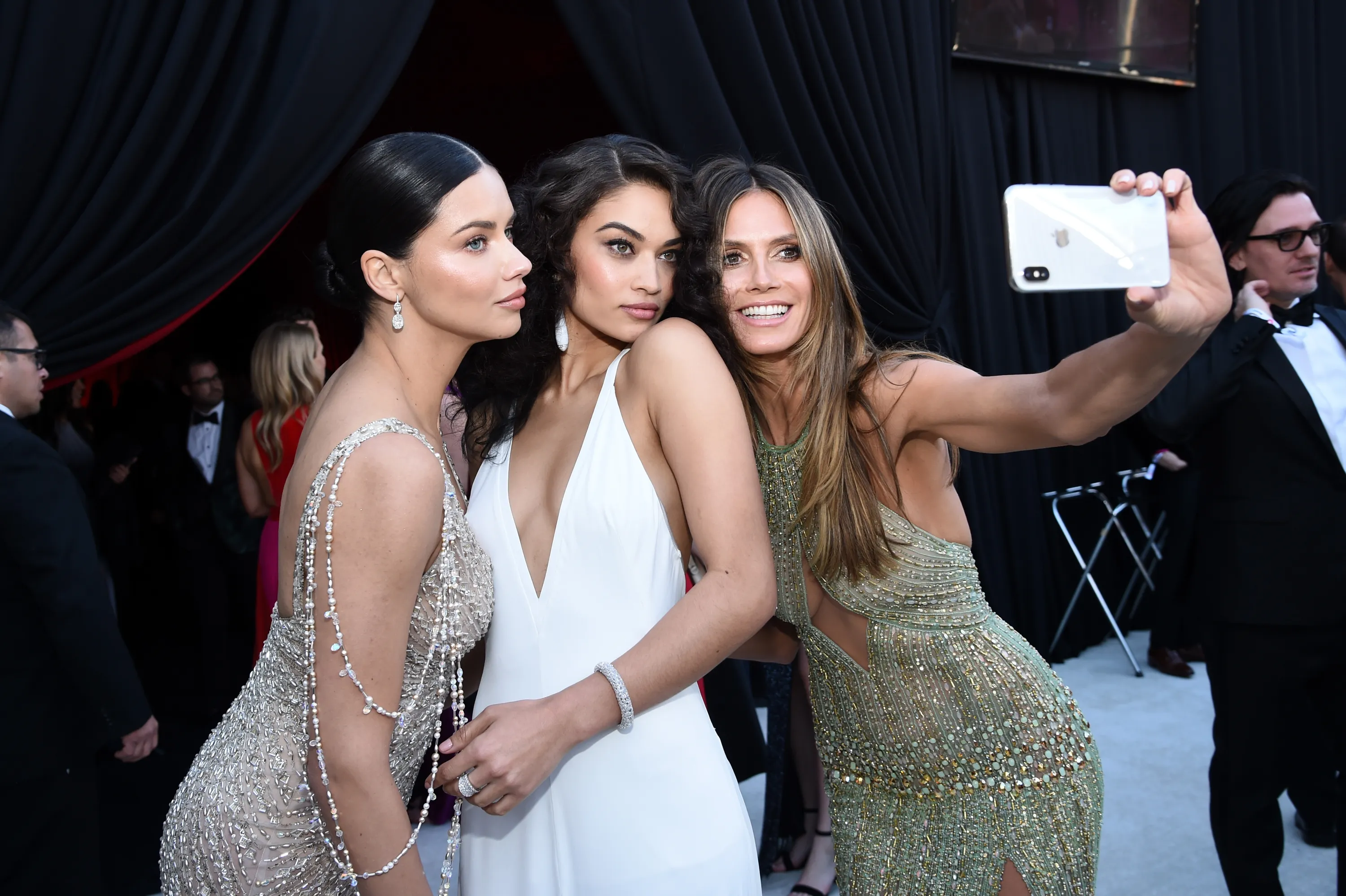 (L-R) Adriana Lima, Shanina Shaik, Heidi Klum attends the 26th annual Elton John AIDS Foundation Academy Awards Viewing Party sponsored by Bulgari, celebrating EJAF and the 90th Academy Awards at The City of West Hollywood Park on March 4, 2018 in West Hollywood, California. (Photo by Dimitrios Kambouris/Getty Images for EJAF)
