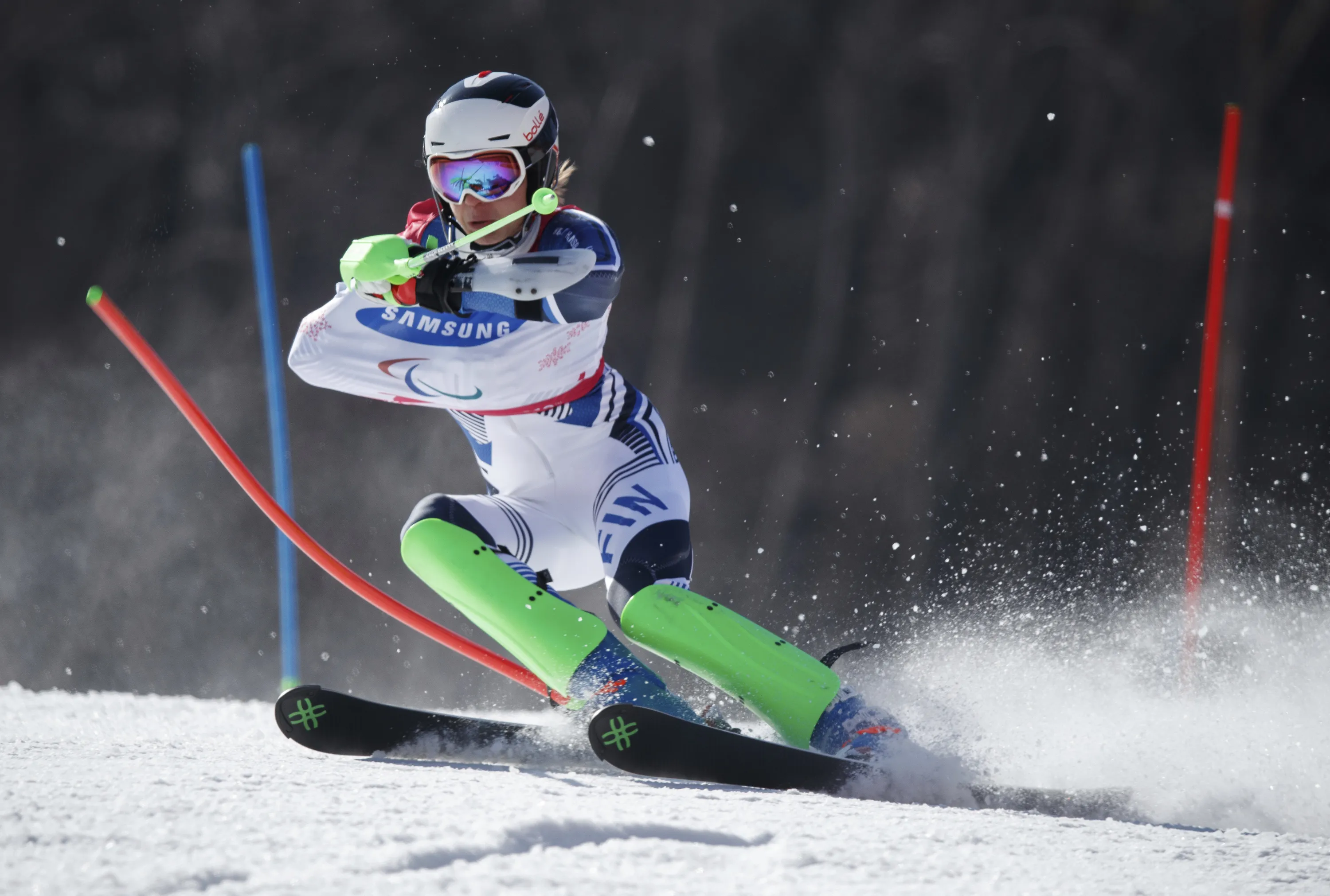 Santeri Kiiveri of Finland competes in the Alpine Skiing Standing Men's Slalom at the Jeongseon Alpine Centre in Jeongseon at the Paralympic Winter Games Saturday, March 17, 2018. (Photo by Simon Bruty/OIS/IOC via AP Photo)