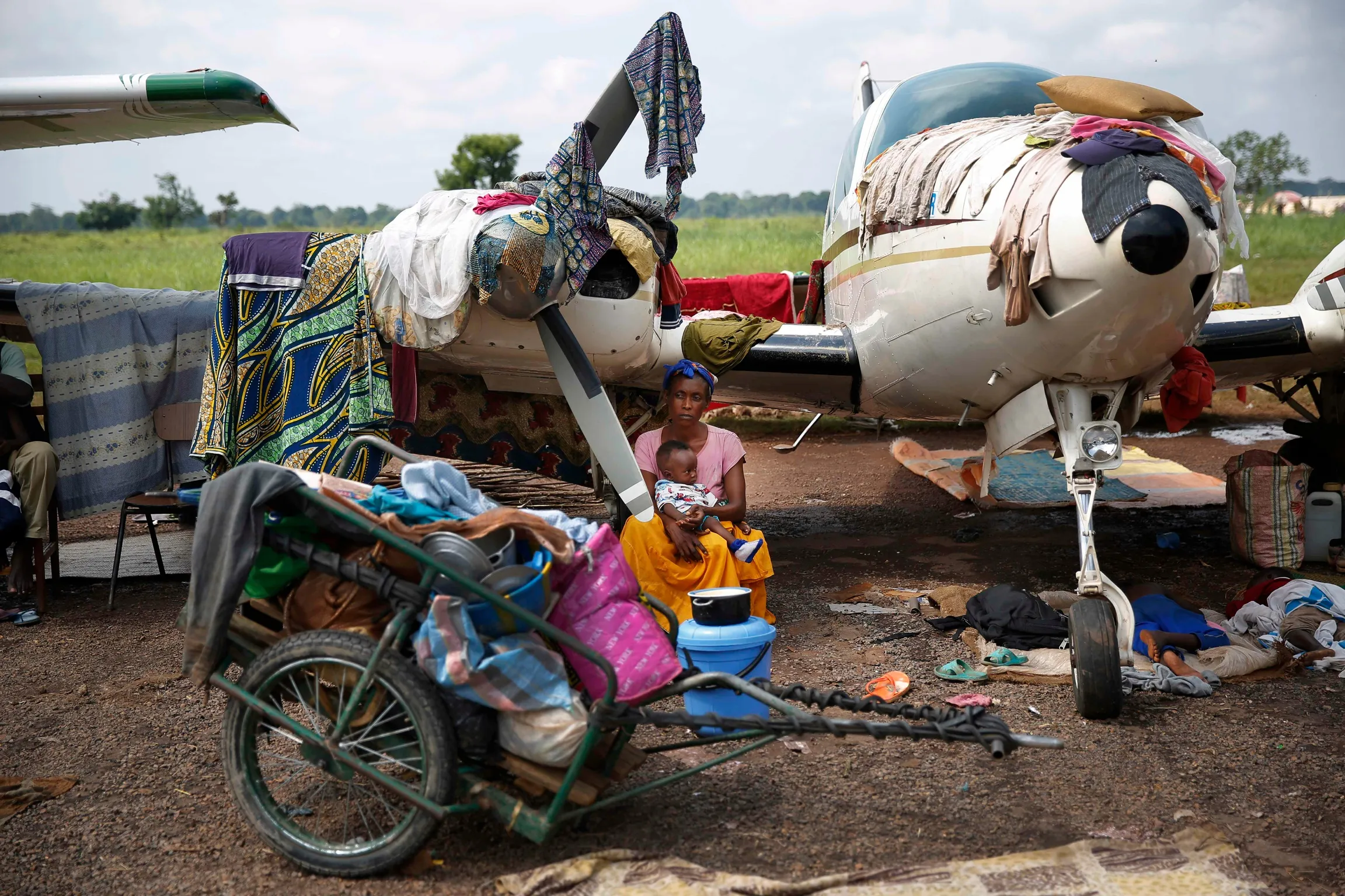Christians gather in a makeshift camp for internally displaced people set in the airport in Bangui, Central African Republic, Friday December 13, 2013. Over 30,000 have gathered there, prompting the UN to start food distribution a kilometer away. Elsewhere in town, French troops backed by an helicopter traded fire with unidentified assailants as France's Defense Minister Jean-Yves Le Drian arrived in Bangui. More than 500 people have been killed over the past eight days in sectarian fighting in Central African Republic. (Photo by Jerome Delay/AP Photo)
