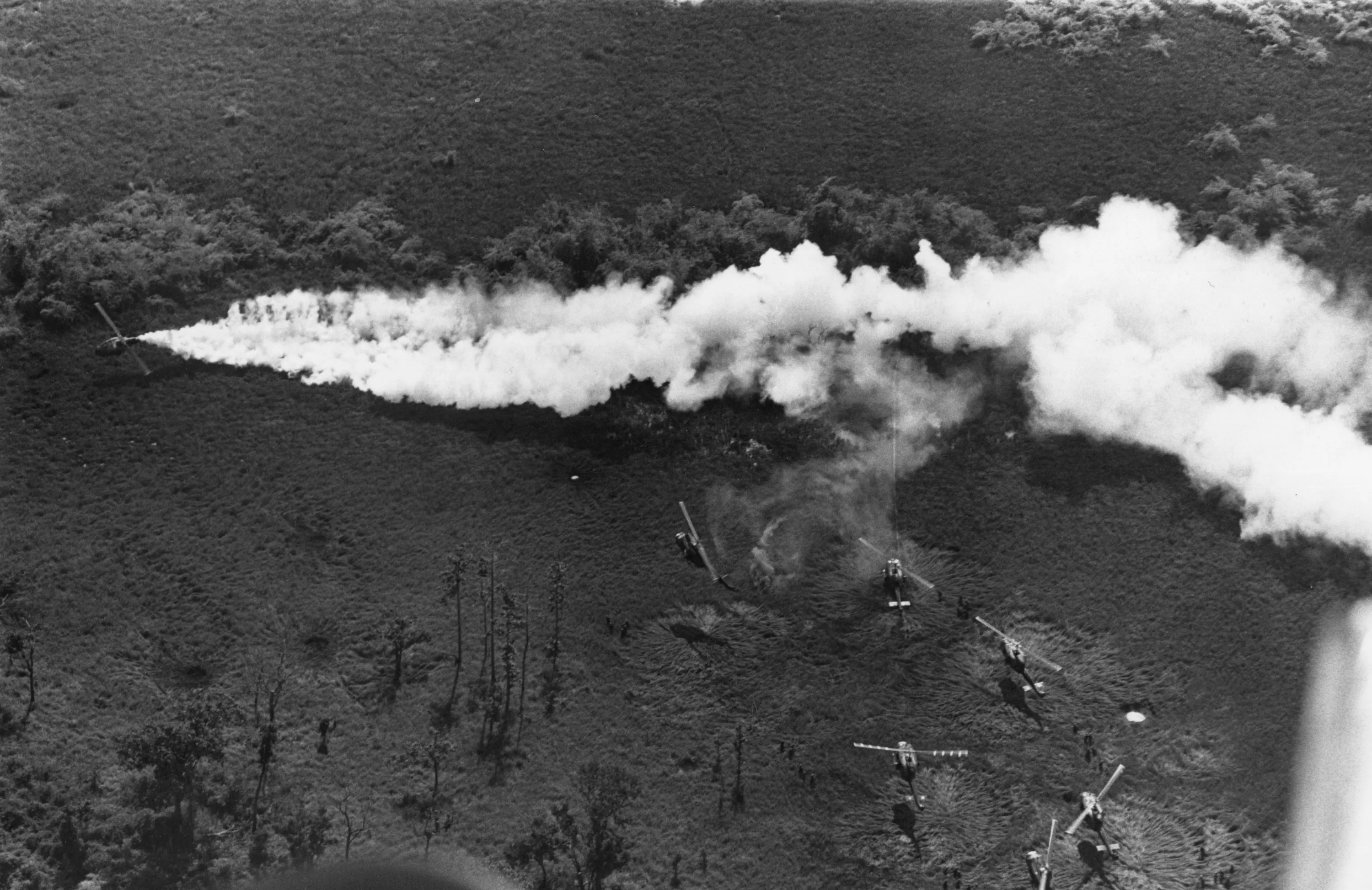 American helicopters in action against the Vietcong, 1968. (Photo by Terry Fincher/Daily Express/Hulton Archive/Getty Images)