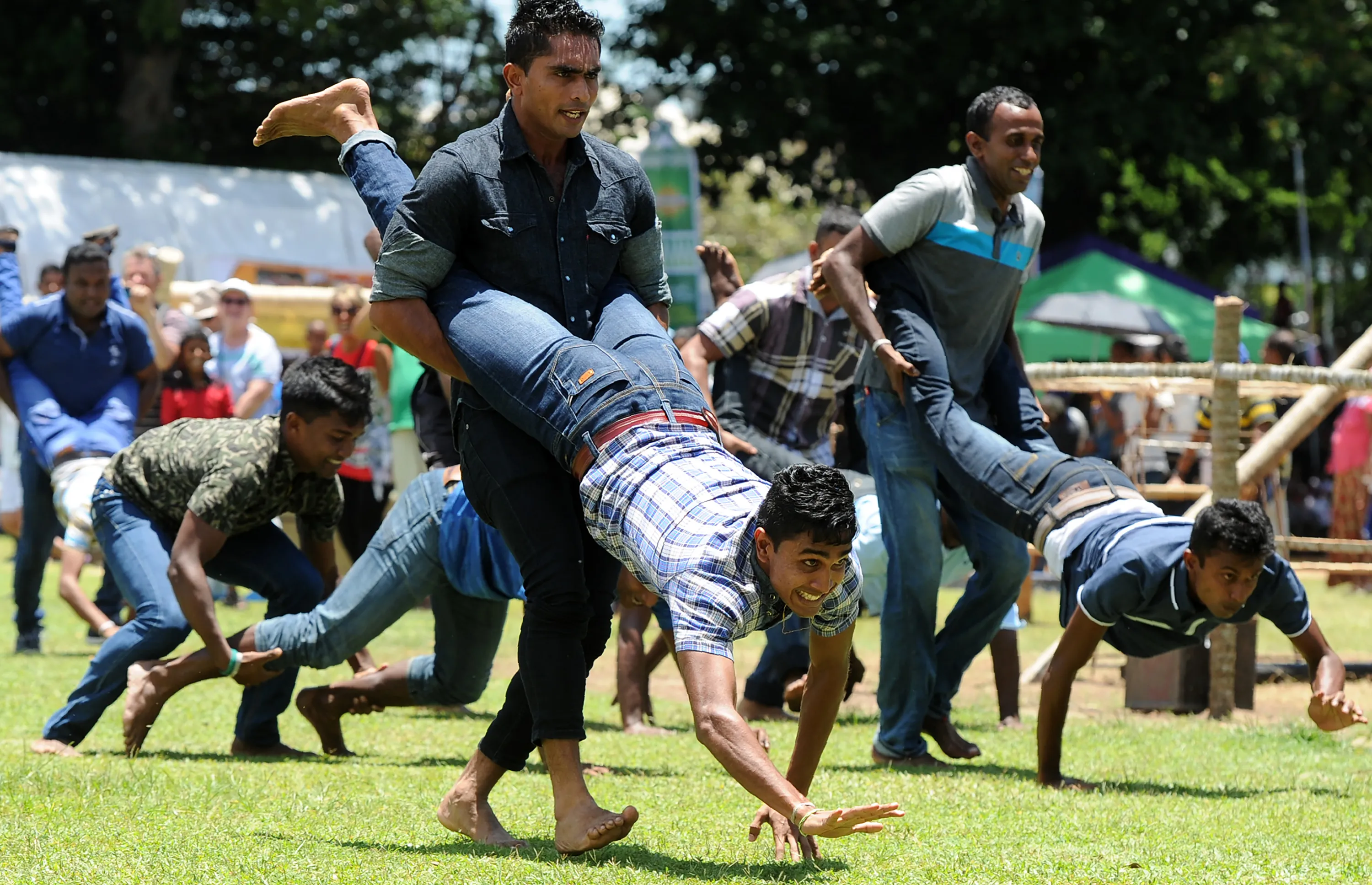 Sri Lankan people participate in a traditional game during Sinhala and Tamil New Year celebrations in Colombo on April 8, 2018. Sri Lanka's Sinhalese and Tamil communities will mark the new year on April 14. (Photo by Lakruwan Wanniarachchi/AFP Photo)