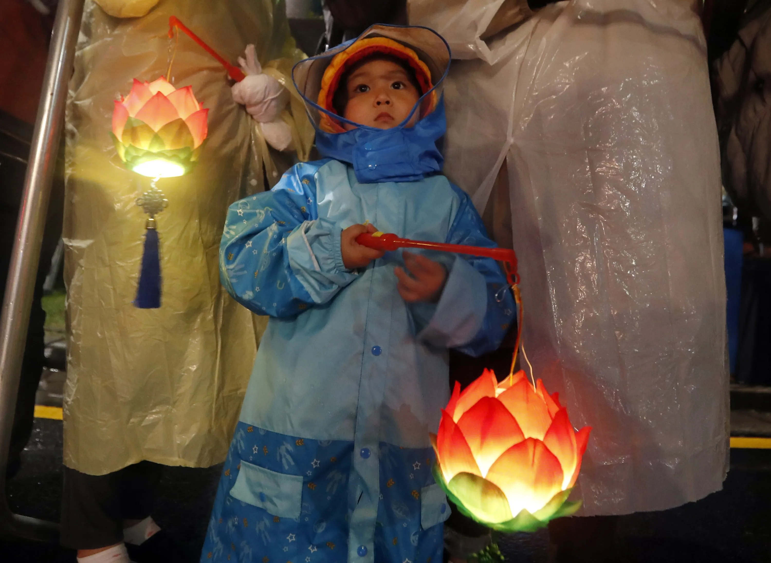 South Korean people and foreign tourists watch the Buddha Era 2562 Lotus Lantern Festival in Seoul, South Korea, 12 May 2018. South Korean Buddhists celebrate Buddha's upcoming birthday on 22 May. The lighting of a lotus-shaped lantern in Buddhism traditionally symbolizes a display of religious devotion to perform good deeds and lighting up the dark parts of the world that are filled with agony. (Photo by Jeon Heon-Kyun/EPA/EFE)