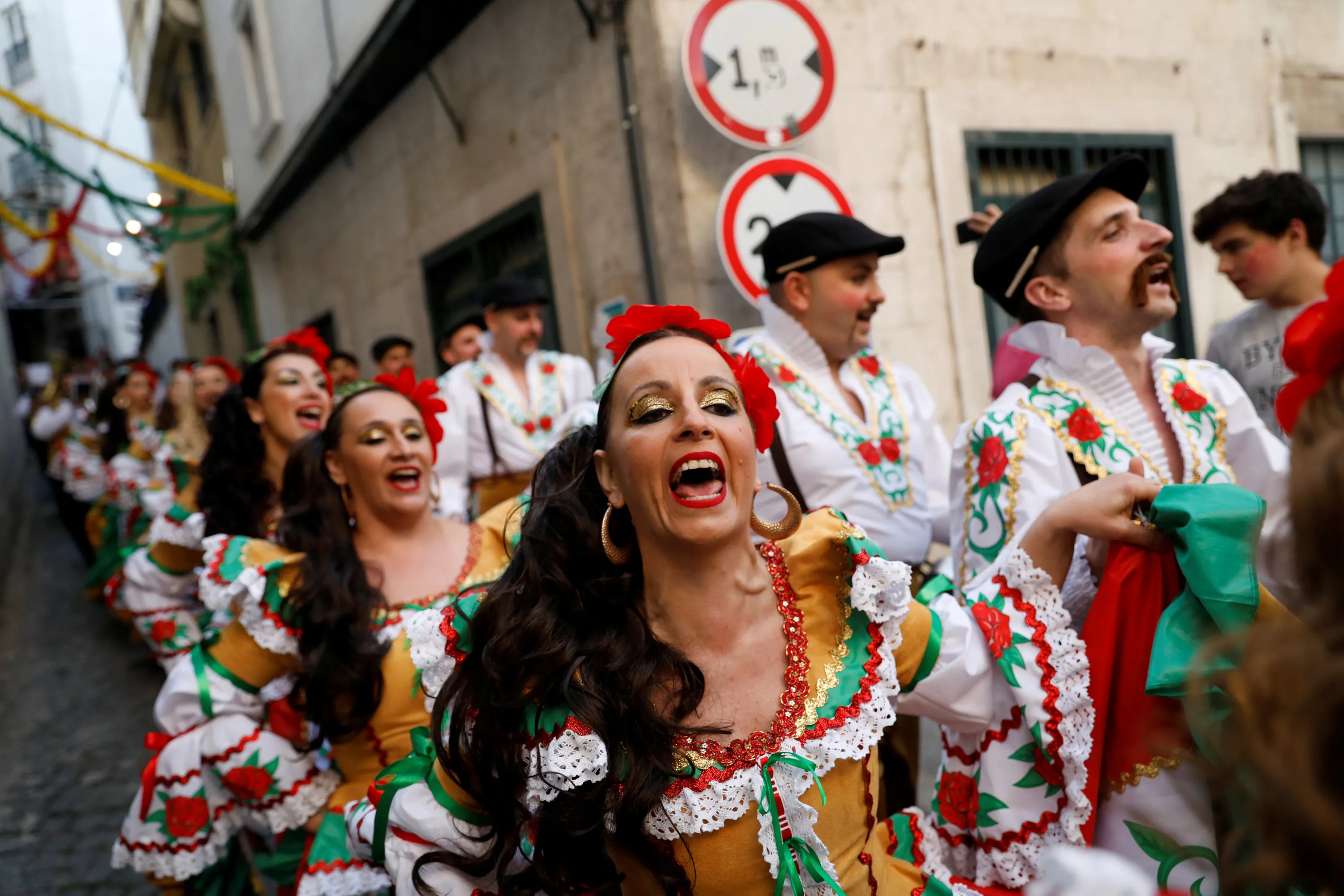 Members of Alfama's group walk down a street on their way to the Saint Anthony's Parade in Lisbon, Portugal June 12, 2018. (Photo by Rafael Marchante/Reuters)