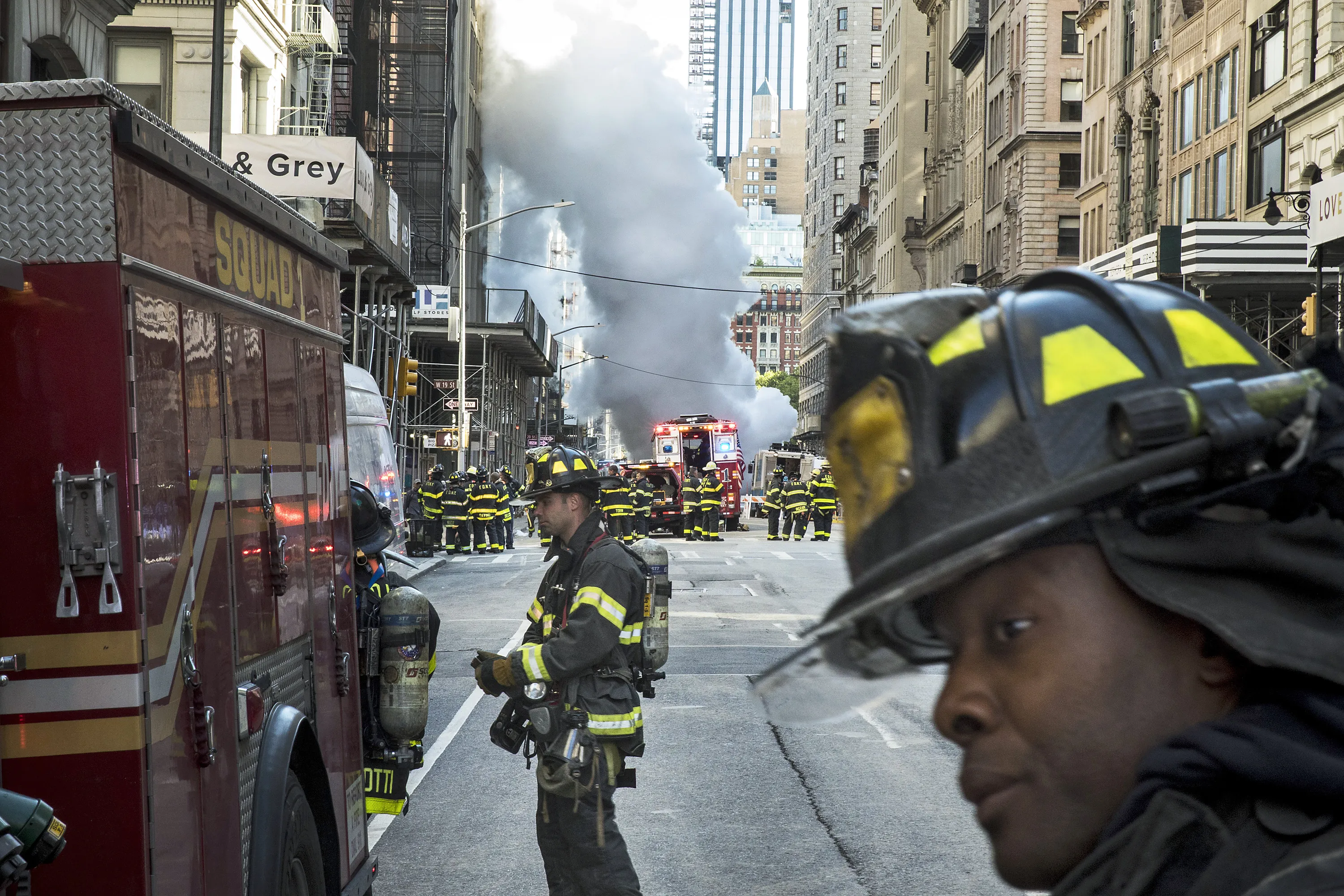 Firefighters work near the scene of a steam pipe explosion on Fifth Avenue near the Flatiron District on July 19, 2018 in New York City. Buildings were evacuated while multiple streets were closed within the area. (Photo by Drew Angerer/Getty Images)